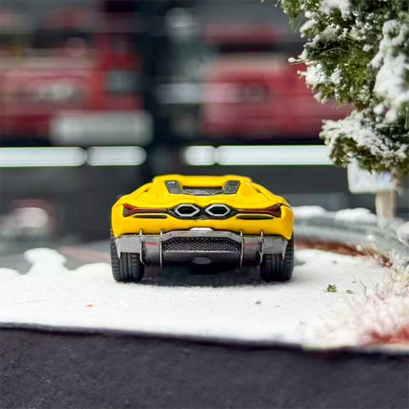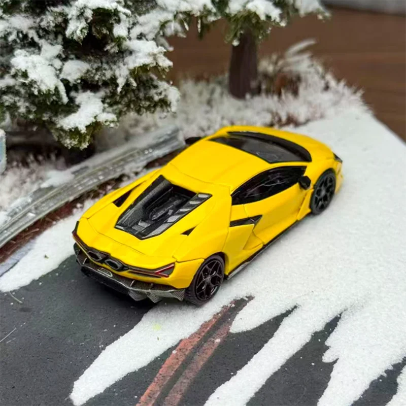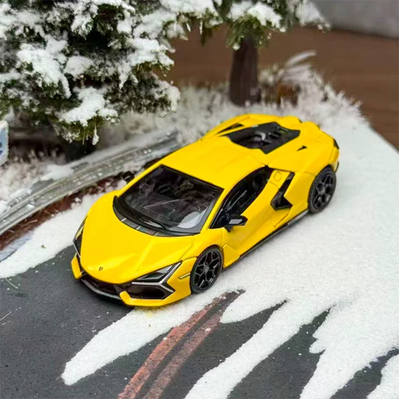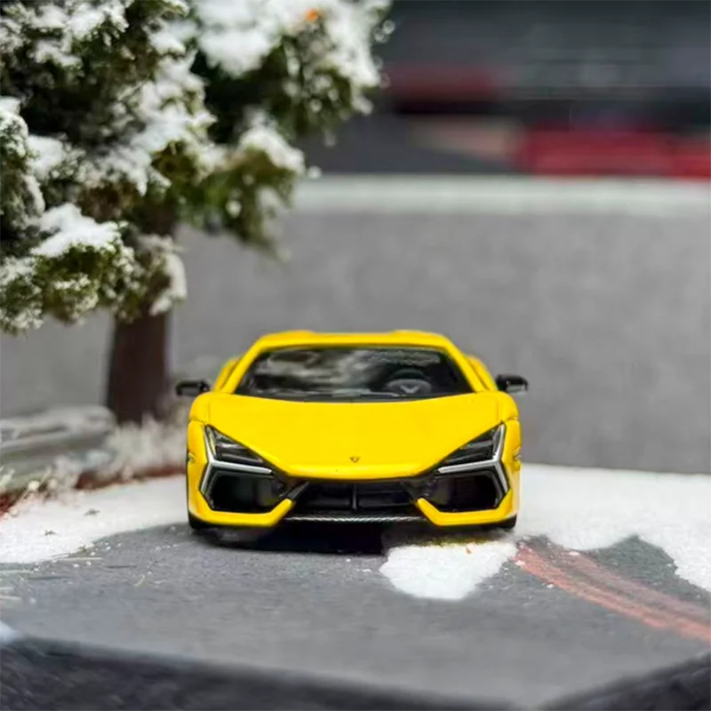 Experience the stunning realism of the MINIGT #886 Reveulto 1:64 scale diecast alloy model, featuring vibrant yellow paint with sharp, angular lines and aggressive styling. This detailed collectible showcases a low, aerodynamic front, narrow headlights, black accents on side mirrors, window frames, and air intakes, along with sculpted doors and a subtle rear spoiler. Crafted from high-quality alloy, it measures approximately 1:64 of the actual vehicle size, perfect for display, collection, or decoration. The meticulously handcrafted design includes adjustable joint elasticity and minor surface imperfections, making it an authentic and visually captivating piece for enthusiasts and collectors alike.