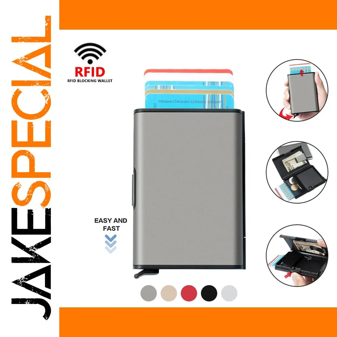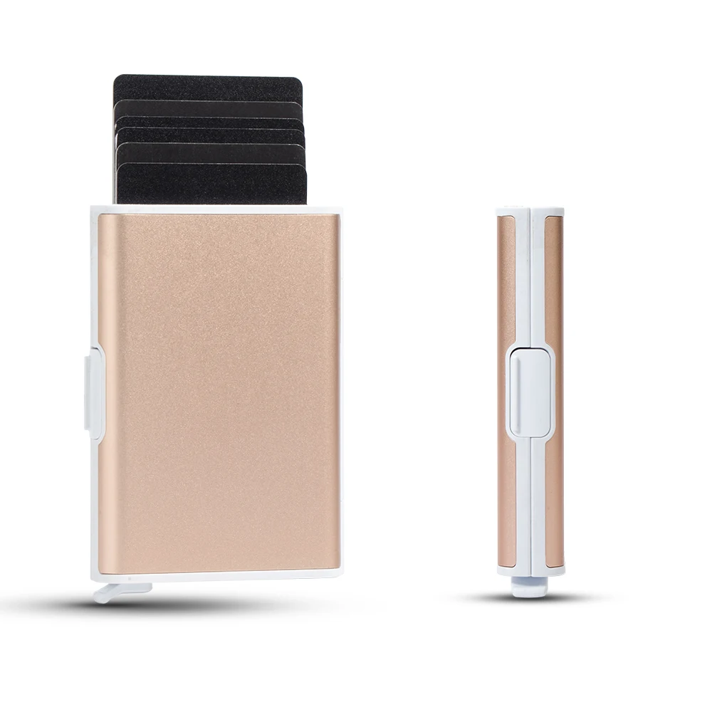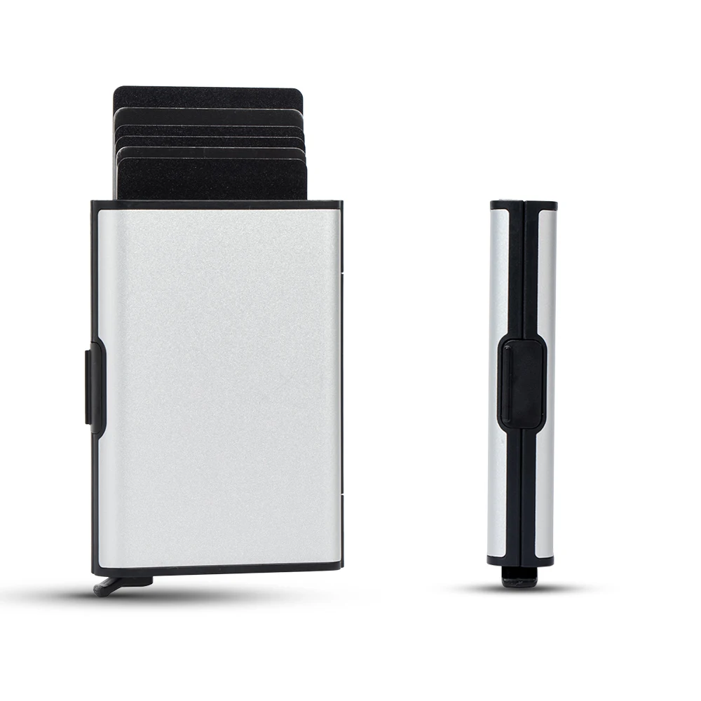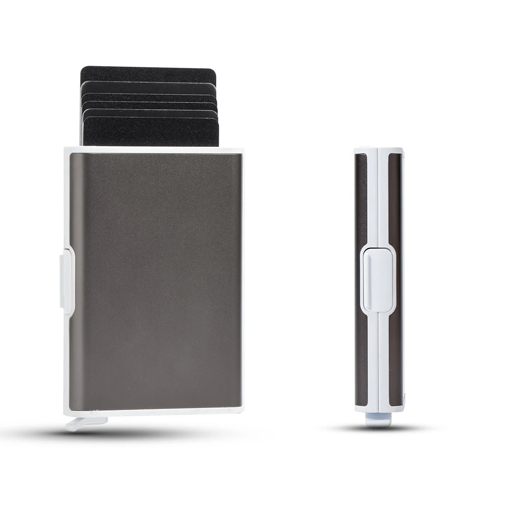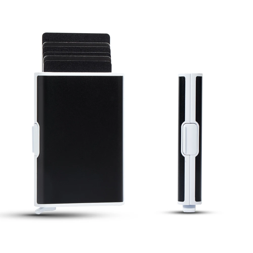 Discover the perfect blend of style and functionality with this minimalist RFID blocking card holder. Designed to hold 5-7 cards securely, it features a convenient pop-up mechanism for easy access. The compact dimensions of 10.6 x 7.1 x 1.9 cm make it an ideal choice for those who value space-saving solutions. Its sleek aluminum and PVC construction ensures durability while maintaining a lightweight profile of just 100g. With interior pockets for coins and cards, this wallet seamlessly combines organization and elegance, allowing you to confidently carry your essentials wherever life takes you. Upgrade your wallet today and experience the simplicity!