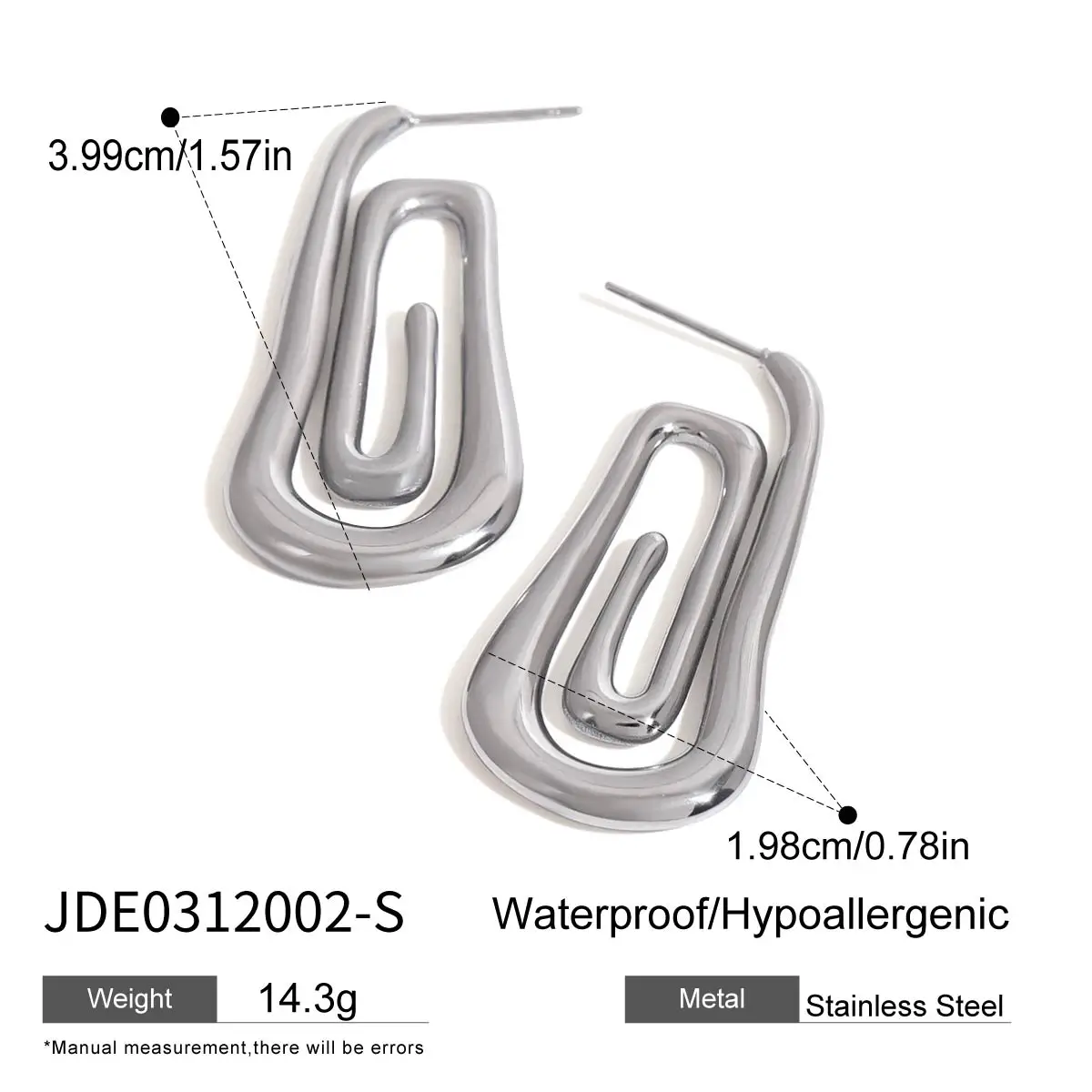 Experience a sleek, contemporary accessory that elevates your everyday style with these minimalist stainless steel earrings. Crafted from high-quality stainless steel with a PVD gold finish, they deliver a lustrous shine that resists fading, scratches, and water. The abstract, elongated spiral paperclip design adds a modern touch, making them perfect for women seeking chic and trendy jewelry. Their lightweight construction (just 15 grams) ensures comfortable wear, while the screw-back fastening provides security. The refined skeleton outline embodies sophistication and simplicity, perfectly complementing both casual and formal outfits. These earrings are an ideal gift or personal indulgence for anyone who appreciates jewelry that combines durability and elegant design in one stylish package.
