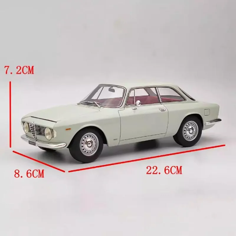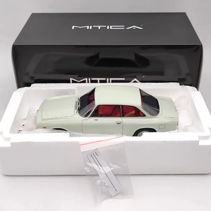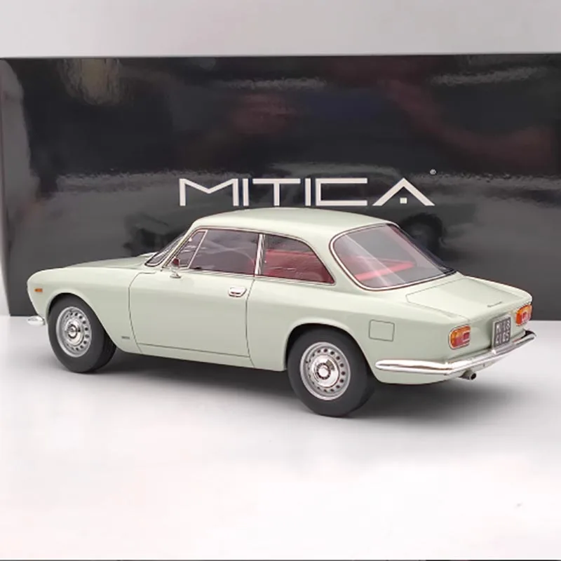 Experience the charm of the classic 1968 MITICA GT1300 Junior, a remarkable 1/18 scale model car that embodies vintage aesthetics. Enveloped in a stunning light pastel green with a glossy finish, its design captures the essence of a bygone era. The diecast model features intricate details, including a chrome grille and sleek headlights that complement its streamlined shape. The rich maroon interior provides a striking contrast, visible through its clear windows. This elegantly crafted model, measuring 22.6 cm in length, 8.6 cm in width, and 7.2 cm in height, is perfect for collectors and enthusiasts alike. Let this exquisite piece inspire nostalgic memories on your shelf.