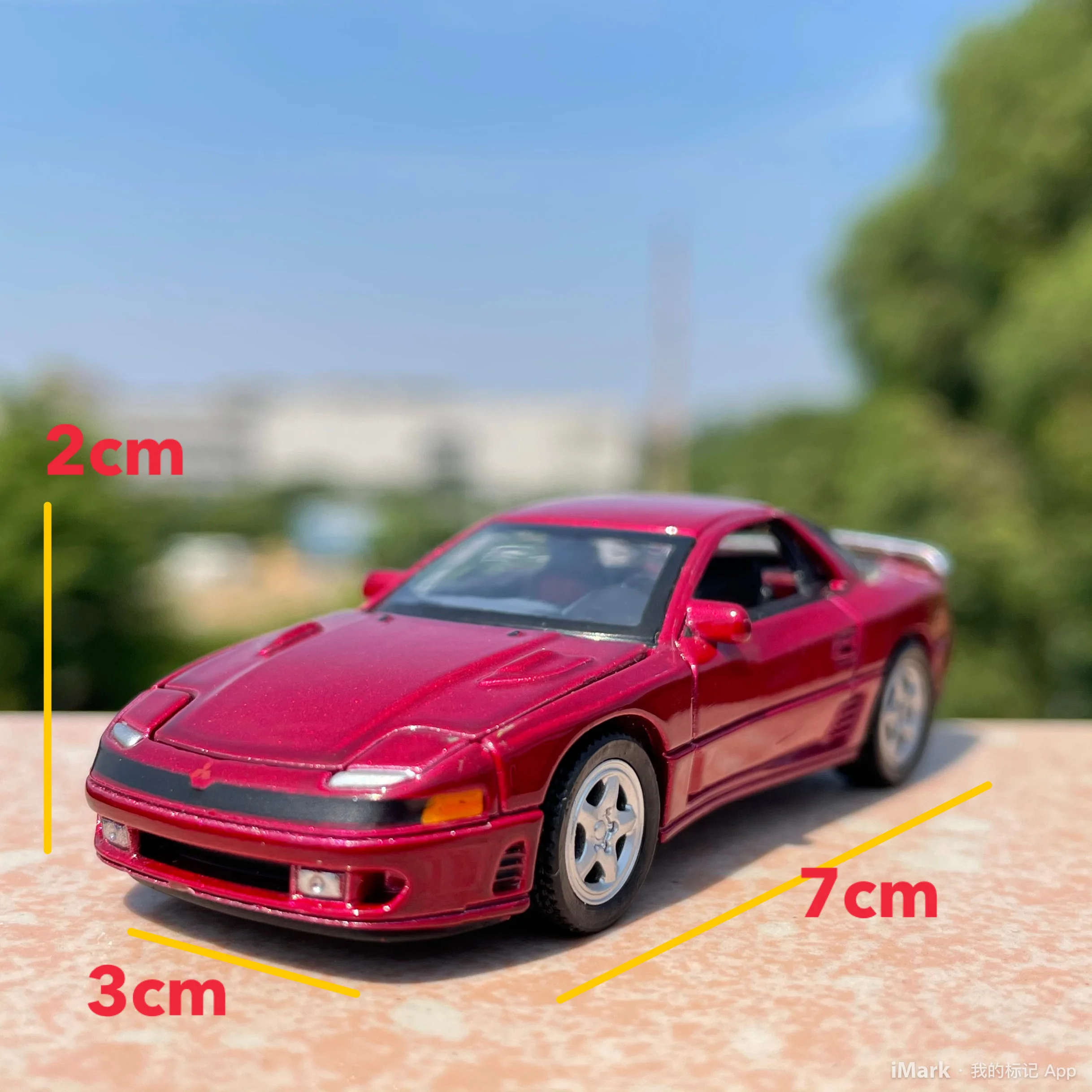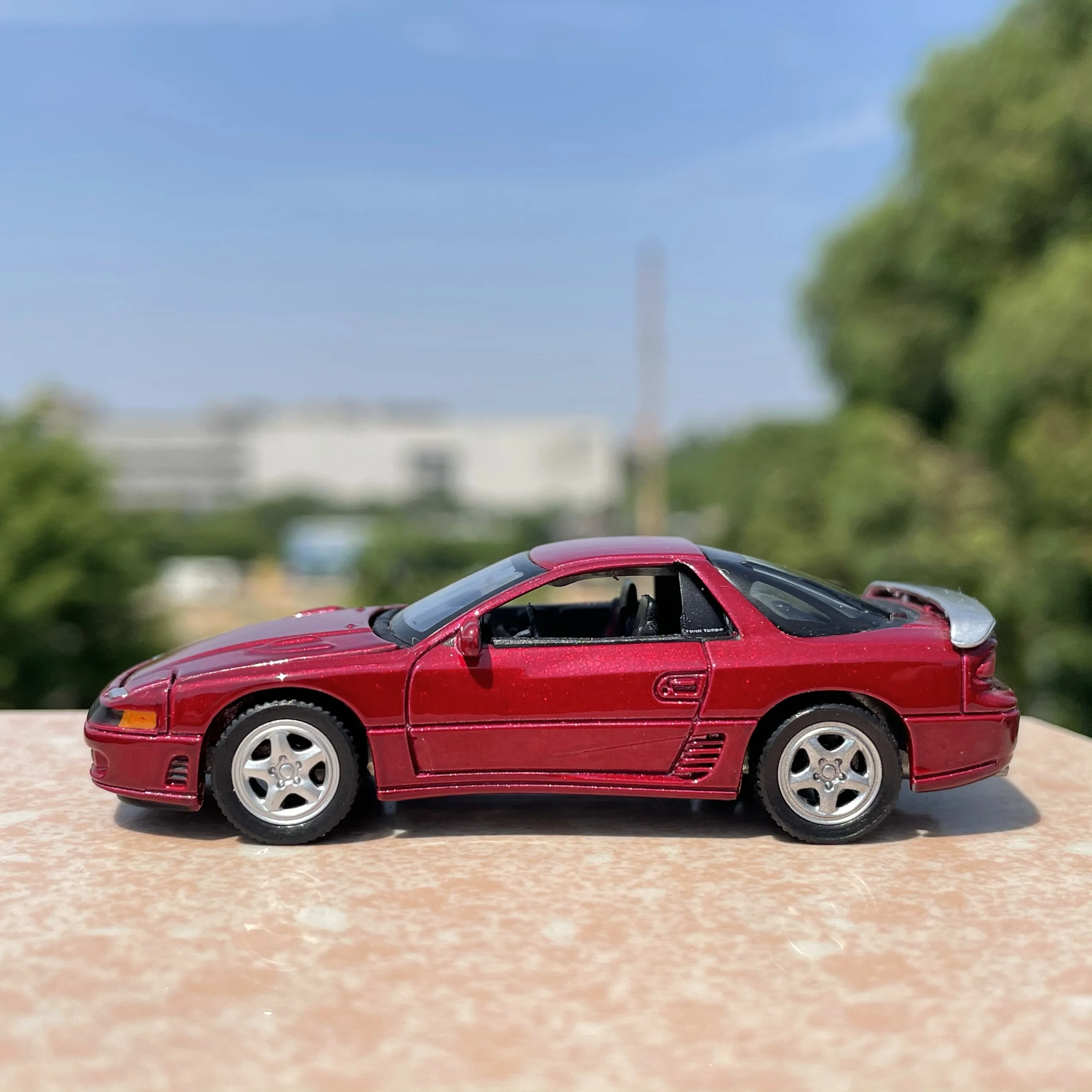 - This diecast alloy model measures 1:64 scale, accurately representing the sporty Mitsubishi 3000GT with intricate detailing and crisp design features for collectors and car enthusiasts.