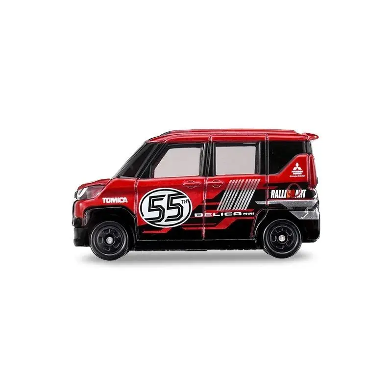 Experience the thrill of owning this meticulously crafted die-cast alloy miniature of a Mitsubishi van, celebrating 55 years of innovation. In a vibrant glossy red, this 1:64 scale model captures the essence of the original vehicle with realistic details that bring it to life. The compact, boxy shape features smooth, rounded edges and a slightly curved roof, adding authenticity to its design. Black accents on the bumpers, undercarriage, windows, and wheels create a striking contrast, enhancing its visual appeal. Front details include a finely sculpted grille, circular clear headlights, and a black bumper, all contributing to its realistic charm. Side decals highlight racing-inspired graphics, featuring a prominent “55” within a white circle, complemented by subtle striping along the vehicle's length. This model is perfect for collectors and enthusiasts alike.