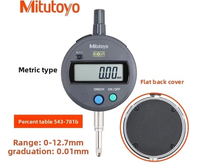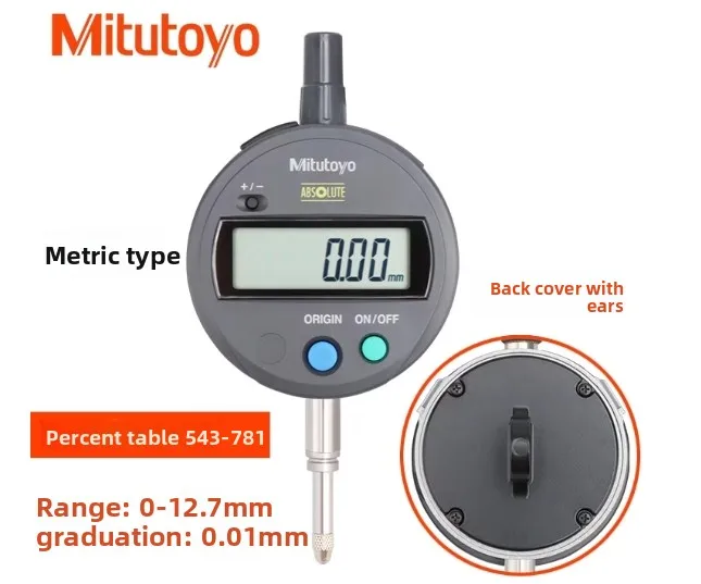 Experience precision measurement with this sleek and robust Mitutoyo Japan Digital Dial Indicator. Designed for professionals who demand accuracy, its compact round black body features a large LCD display with 9mm high characters for effortless reading. The indicator’s stainless-steel probe and sturdy construction ensure long-lasting durability in harsh environments. Its versatile design includes models with ear or flat back covers, and an IP53 rating on certain models offers protection against dust and water. The device’s digital interface provides resolutions of 0.01mm, with some options offering 0.001mm precision. Easy to operate with universal SR44 button batteries, it incorporates an advanced ABS sensor that eliminates the need for zero reset after power off, boosting measurement consistency. Perfectly suited for metalworking and precise scientific applications.