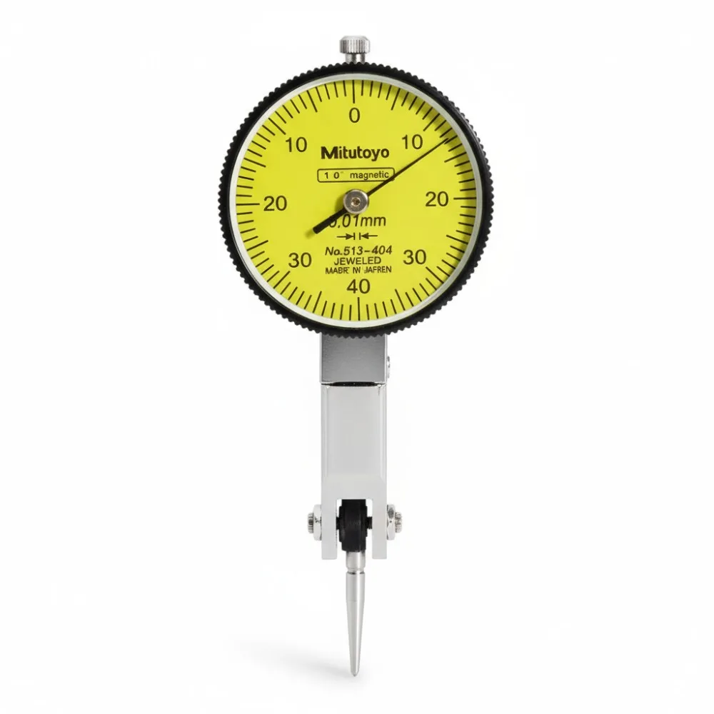 Experience exceptional measurement accuracy with this Mitutoyo Dial Indicator 513-404, crafted for professionals who demand precision. Designed with a bright yellow dial face, it features high-visibility black scale markings and a bold black outer ring, ensuring easy readability during intricate machining, layout, or inspection work. The gauge’s metallic construction guarantees durability, while the compact size allows for effortless handling in tight spaces. Its dual display—black inch scale (0–40–0) and a red measurement scale (0.001mm)—provides clear, accurate readings at a glance. The 180° adjustable probe and swing-type design enhance flexibility, and the knurled bezel, capable of 360° rotation, makes zero-setting quick and straightforward. With reliable magnetic pointers and robust components, this tool is an essential for precision measurement tasks.