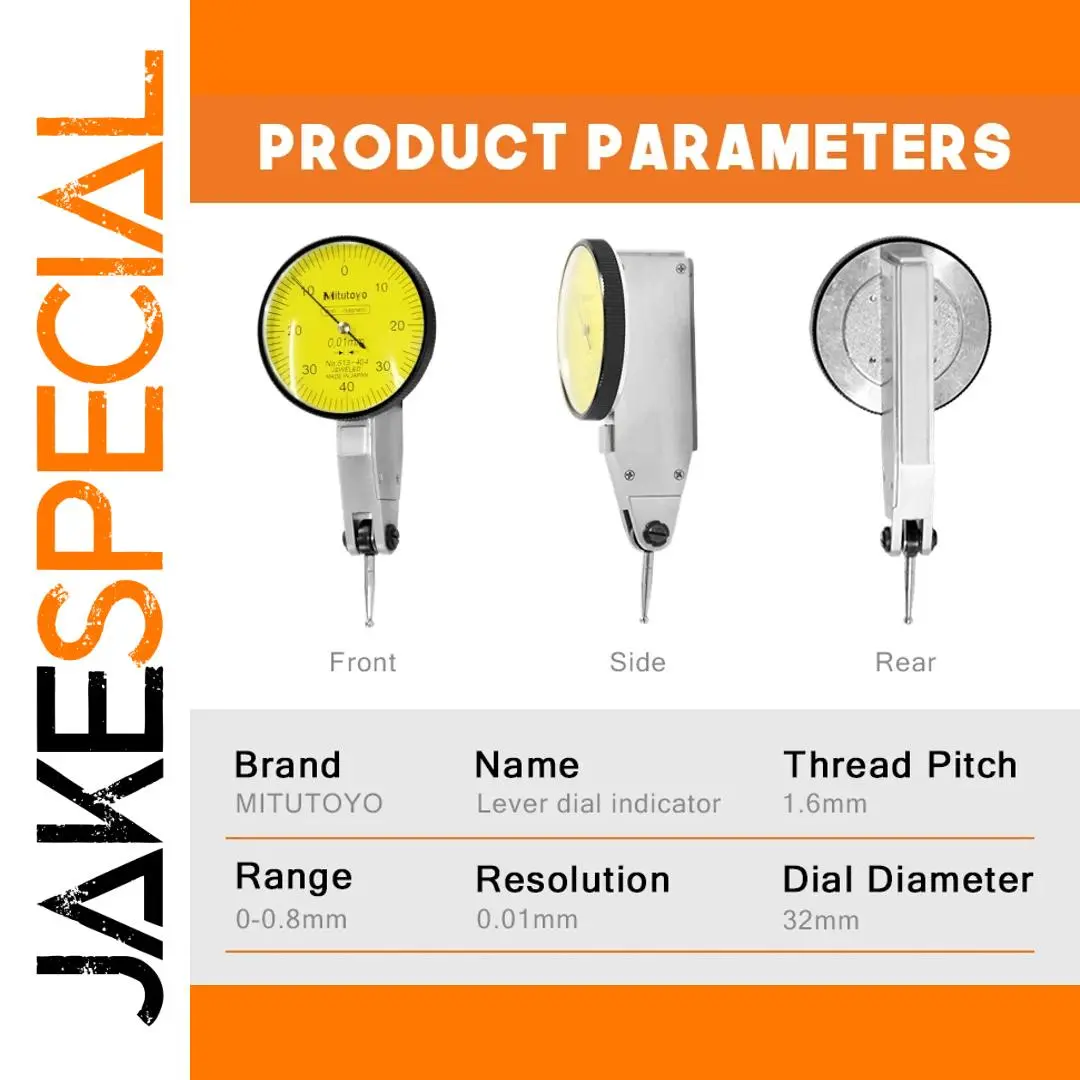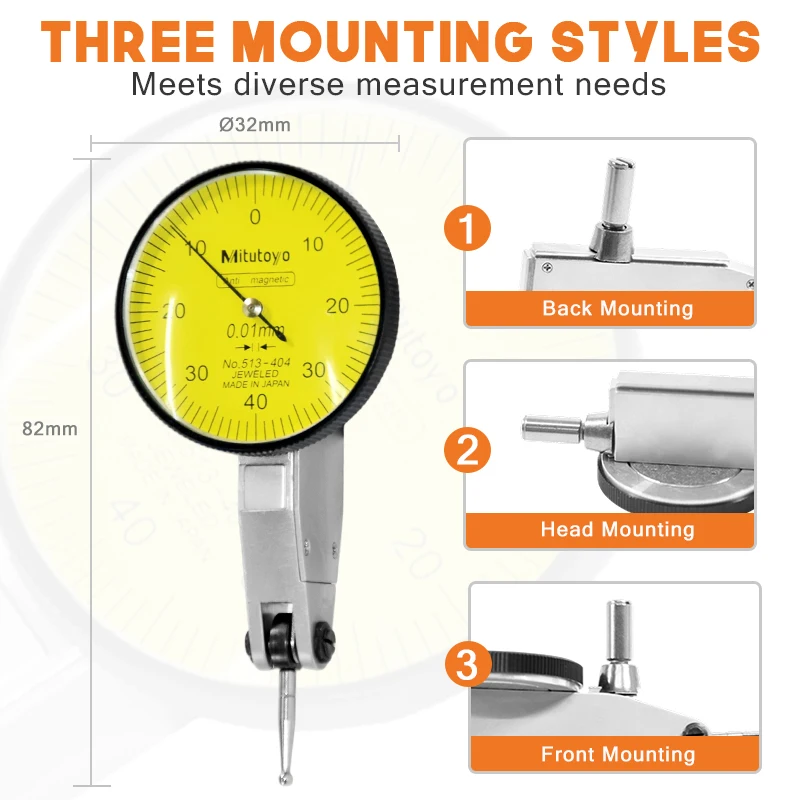Experience precise and reliable measurement with the Mitutoyo Dial Indicator Model 513-404, featuring a 0-0.8mm range and a remarkable 0.01mm (0.0005″) graduation accuracy. Crafted from durable metal, its bright yellow dial face with black and red scales ensures high visibility and easy readings. The dual-scale display allows seamless switching between inch and millimeter measurements, while the 180° rotating probe and 360° rotating knurled bezel provide flexible, effortless positioning. Designed for professional machining, layout, and inspection tasks, this high-sensitivity indicator includes a dovetail mount with clamps, offering versatile attachment options. Perfect for achieving precise internal and external measurements with confidence.