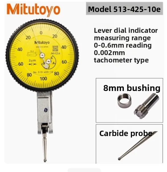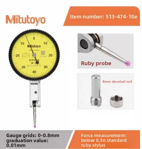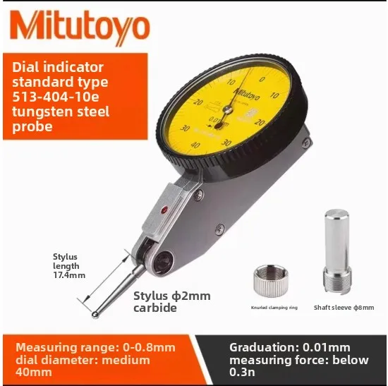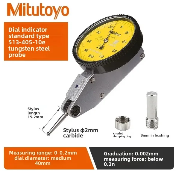 Experience precise measurements with this Mitutoyo Japan Lever Table Dial Indicator, featuring an analog display with a maximum range of 0-0.8mm and an accuracy of 0.001mm. Available in models with resolutions of 0.001mm, including 513-405-10E, 513-401-10E, 513-471-10E, and 513-475-10E, as well as 0.01mm models like 513-404-10E and 513-474-10E. Its horizontal design and durable construction make it ideal for metalworking applications, providing clear, easy-to-read measurements and reliable performance for professional and enthusiast use alike.