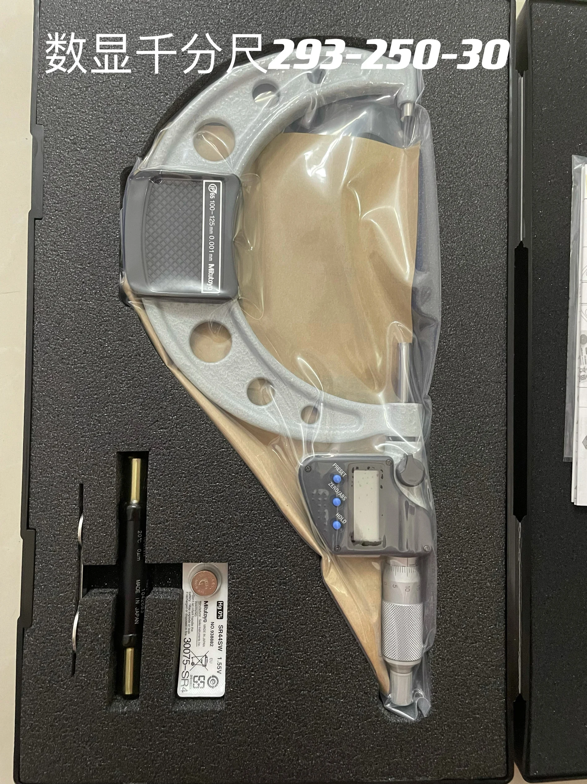 - Technical specifications: measurement range 100-125mm, accuracy 0.001mm, digital display, CNC-grade construction, and compatible models starting from 293-250-30 to 293-257-30.
