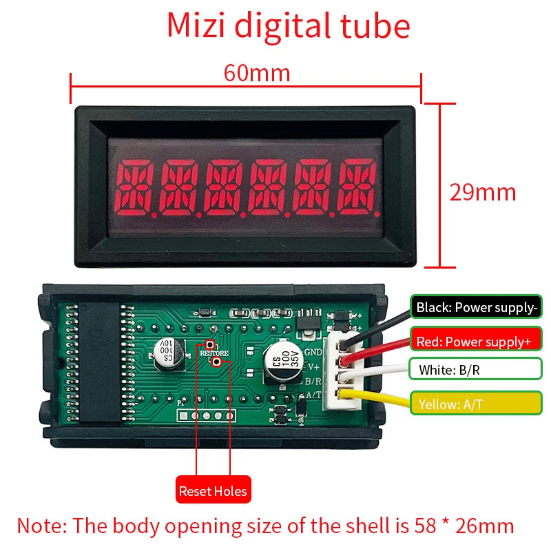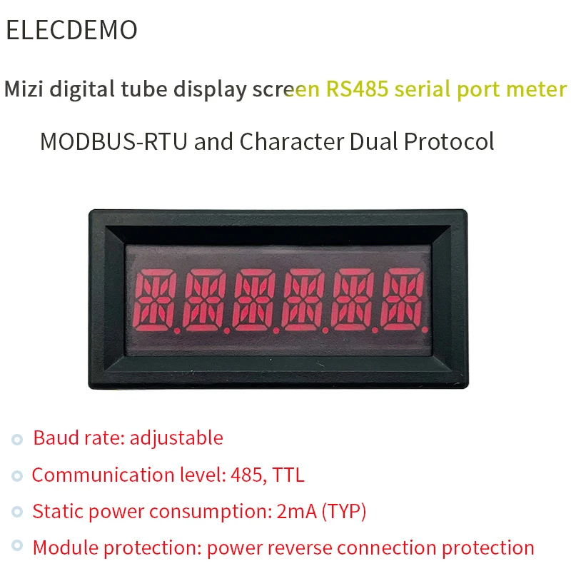 Experience precise digital readings with this high-quality Mizi digital tube display module, designed specifically for industrial automation and control systems. Its sleek, elongated rectangular shape features a black bezel that frames a bright red seven-segment digital display, ensuring maximum visibility and clarity in any environment. The luminous red digits are evenly spaced, delivering a sharp, high-contrast appearance ideal for monitoring and data visualization. Built with durability and simplicity in mind, this module has a minimalist front surface without buttons or controls, making it suitable for seamless integration into your existing systems. Available in two versions—RS485 and TTL—this display module guarantees reliable and fast serial data transmission, supporting sophisticated industrial applications.