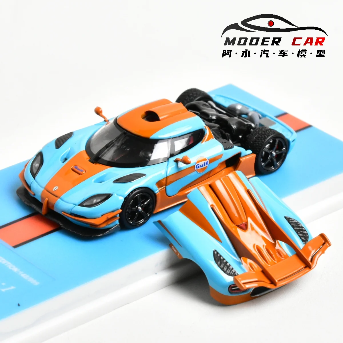 The MJ 1:64 diecast model car is a striking representation of high-performance excellence. With its vibrant teal color, complemented by sleek black detailing and a distinct yellow stripe, this model captures attention effortlessly. Crafted from durable metal, it boasts an impressive weight and feel indicative of quality craftsmanship. The aerodynamically styled front features sharp curves and a clear windshield that showcases intricate interior details. The model is further enhanced with black alloy wheels and a prominent rear wing, solidifying its sporty aesthetic. Details such as air intakes and exhausts contribute to the realism of this outstanding collectible, making it perfect for any adult model enthusiast.