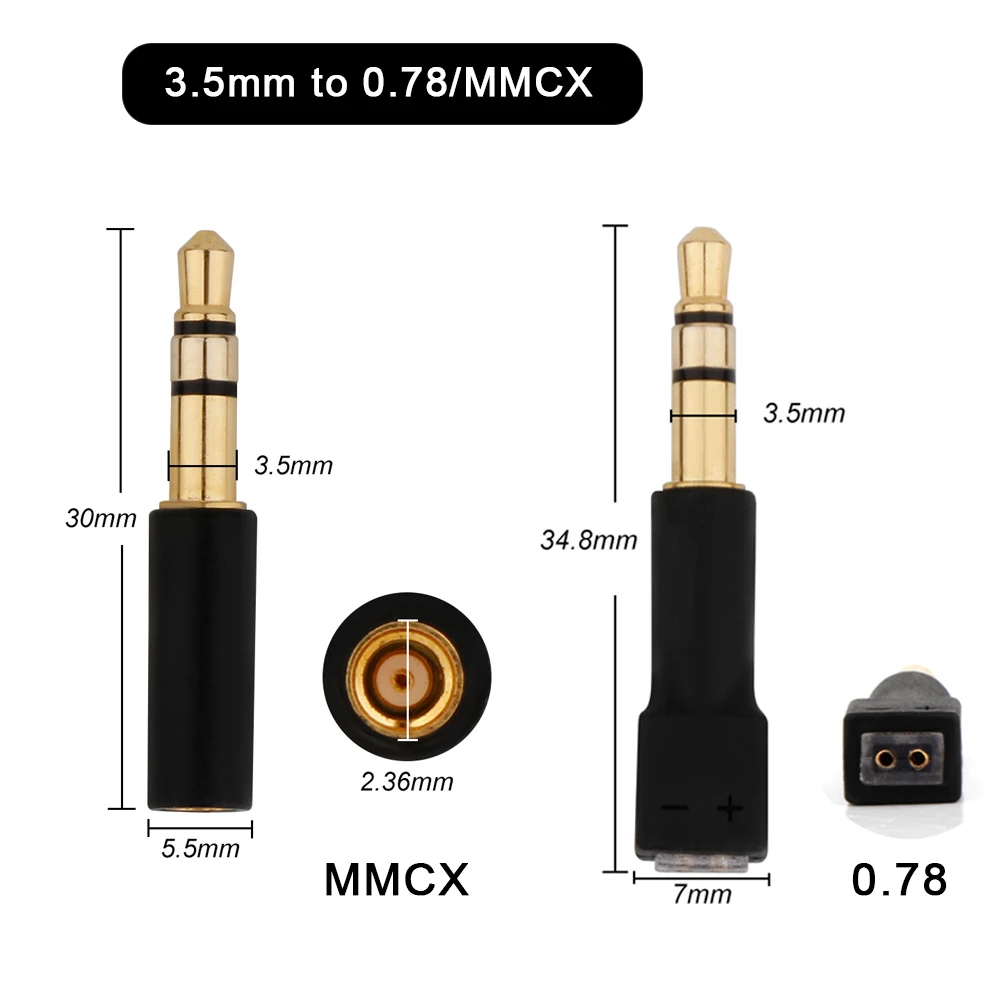 Enhance your audio experience with this high-quality adapter set, featuring a 0.78mm MMCX female connector to a 3.5mm stereo male plug, supporting dual 3.5mm inputs for connecting two headphones to one device. Crafted with durable, gold-plated metal components, the adapters ensure optimal signal transmission and longevity. Their precise, handmade construction includes slight tilting of female plugs for a specialized fit, perfect for DIY headphone modifications and stereo headset setups. Compatible with popular models such as IE3001, JH24, and HD580, these adapters provide high-fidelity audio performance in a sleek, professional design, making them a reliable choice for audiophiles and enthusiasts alike.