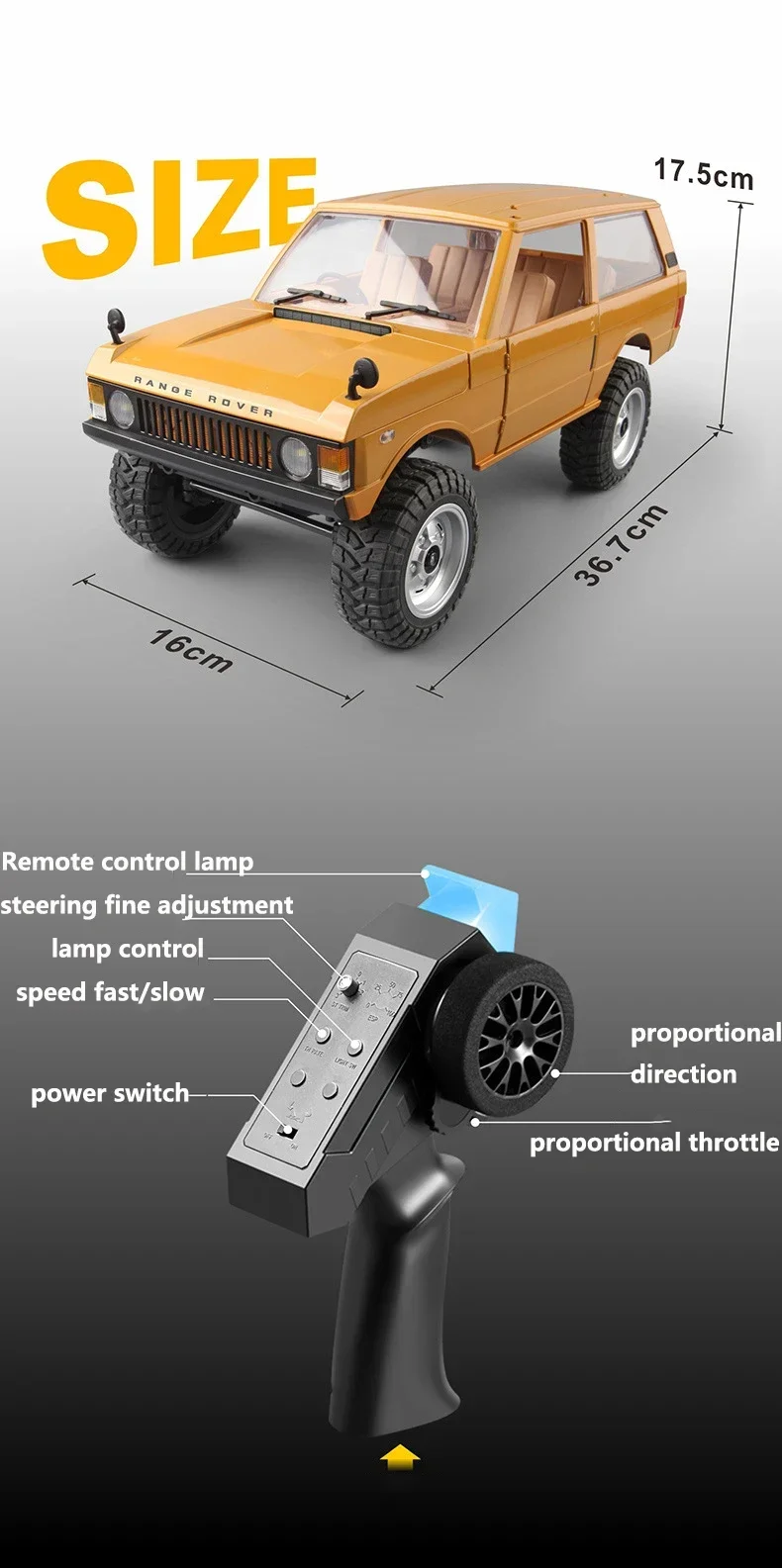 Imagine taking control of the MN-168 RC Car, a stunning 1:12 scale off-road vehicle that delivers thrilling moments and fun-filled adventures. Its vibrant blue finish not only catches attention but also embodies the classic style of a Range Rover. With a robust build and advanced features including a powerful 280 motor, this car is designed for exciting climbs and swift maneuvers. The 2.4G remote control system provides seamless operation, letting you navigate through various terrains with ease. Ready-to-go right out of the box, this RC car is perfect for rc enthusiasts looking for adventure that inspires confidence and excitement.