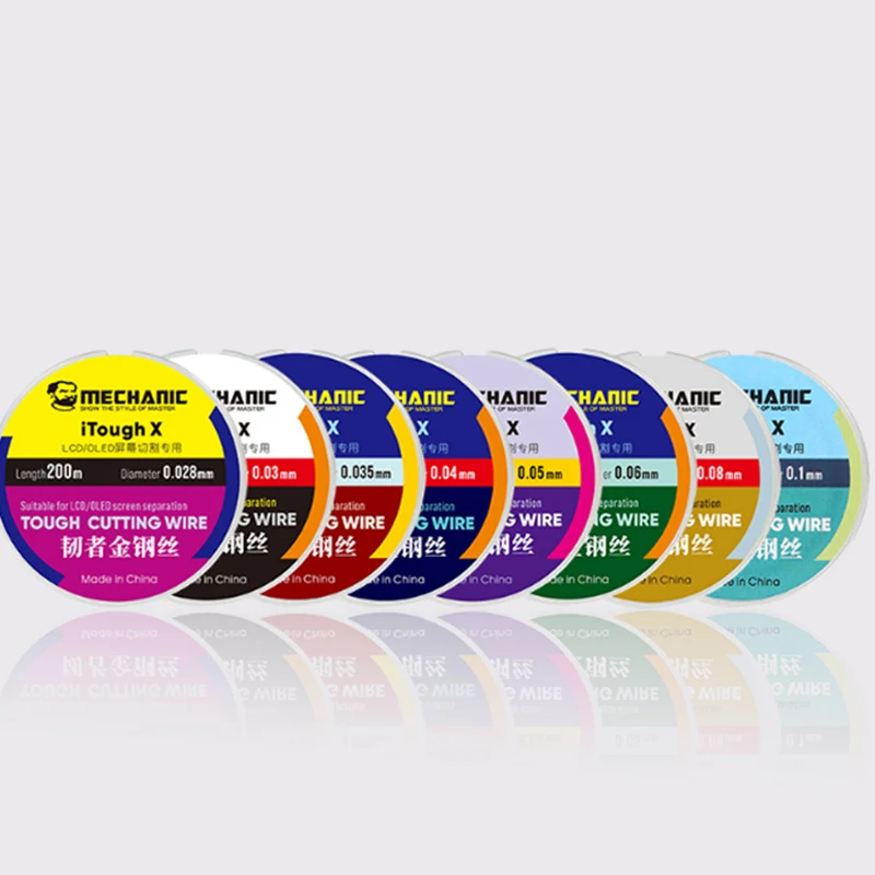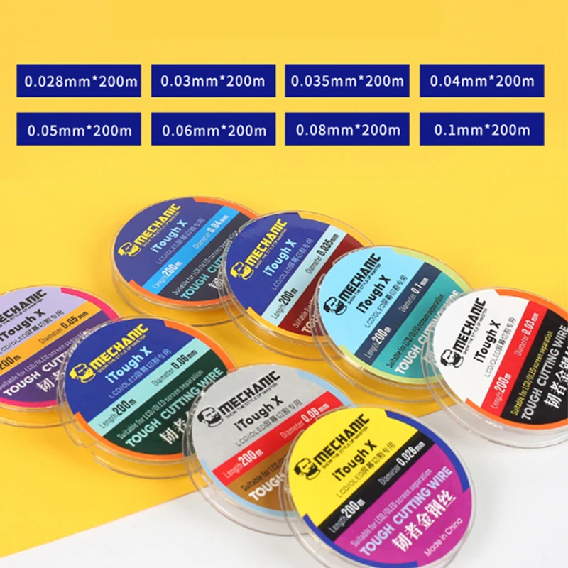 The cutting line is an essential tool for mobile phone repair enthusiasts and professionals alike. Made from tough alloy steel molybdenum, it is crafted to provide durability and reliability for effective LCD/OLED screen separation. Available in a variety of diameters ranging from 0.028mm to 0.1mm, with a standard length of 200 meters, each spool is designed for easy handling. The bright, vibrant colors of each spool ensure easy identification and organization so you can quickly find the right diameter for your tasks. Enhance your repair skills with this versatile cutting line that fits seamlessly into any computer tool kit.