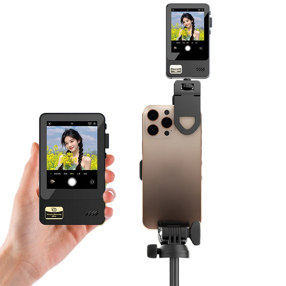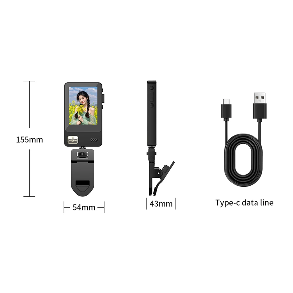 Experience the ultimate in portable vlogging and live streaming with this sleek, compact device, designed for seamless connectivity and professional-quality selfies. Its minimalist rectangular shape fits comfortably in your hand, making it easy to attach to tripods, selfie sticks, or wear on clothing. The vibrant 2.4-inch display with a 480×800 resolution allows you to preview your shots in high quality, ensuring your content looks sharp and vibrant. Crafted from durable plastic in matte black or white, this device combines modern style with practicality. Perfect for on-the-go content creators, it offers wireless screen mirroring, focus adjustment, and remote control capabilities. Its lightweight, foldable stand and universal clip enhance versatility, making it an indispensable tool for social media, vlogging, and live streaming.