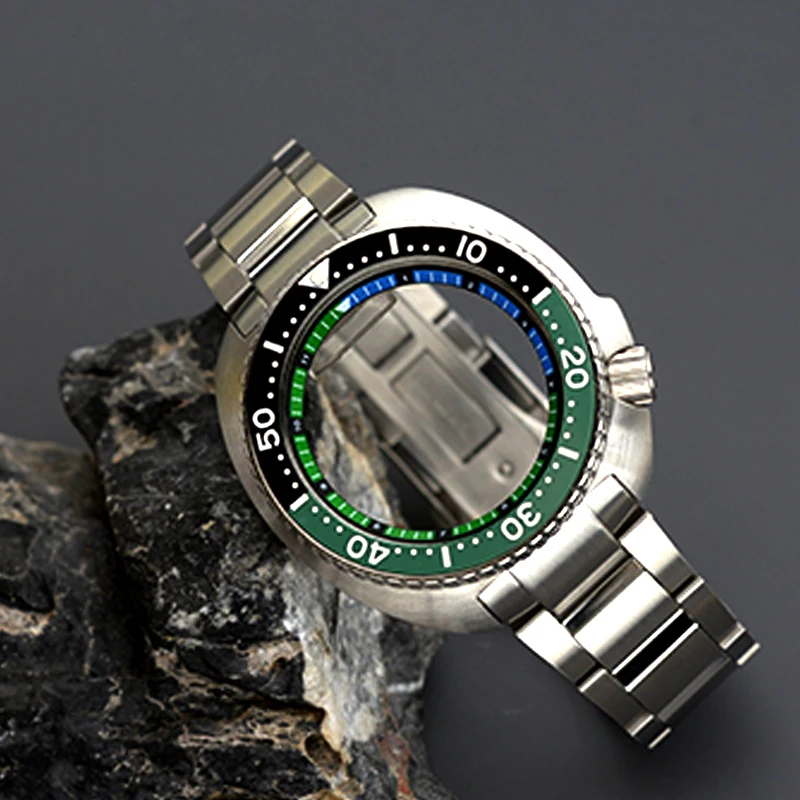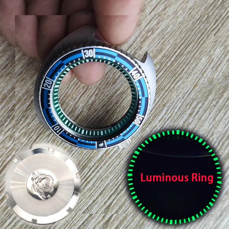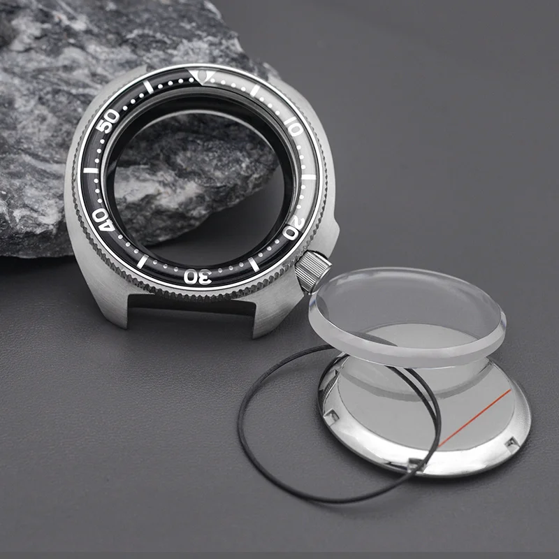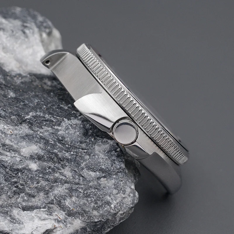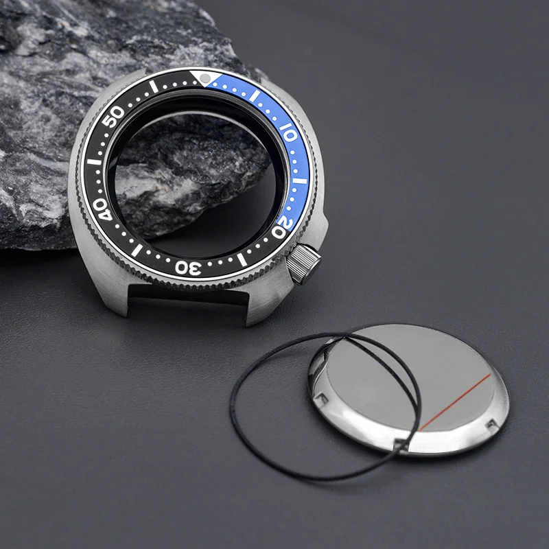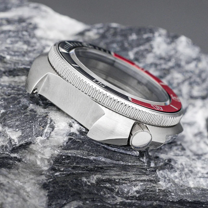 Experience durability and sporty style with this Model SKX6105 stainless steel watch case, crafted from 316L stainless steel with a 44mm diameter and 14mm thickness. It features a sapphire crystal glass with a clear coating, a resin bezel insert in striking red and black, and a copper chapter ring for an elegant contrast. Designed for water resistance up to 200 meters, it includes a sealed stainless steel case back and a crown positioned at 4.1 o’clock for added functionality. Compatible with movements such as NH35, NH36, 7002, 7S26, 7S36, 4R35, and 4R36, it holds a 28.5mm dial and fits a 20mm strap, perfect for a robust, customizable dive watch.
