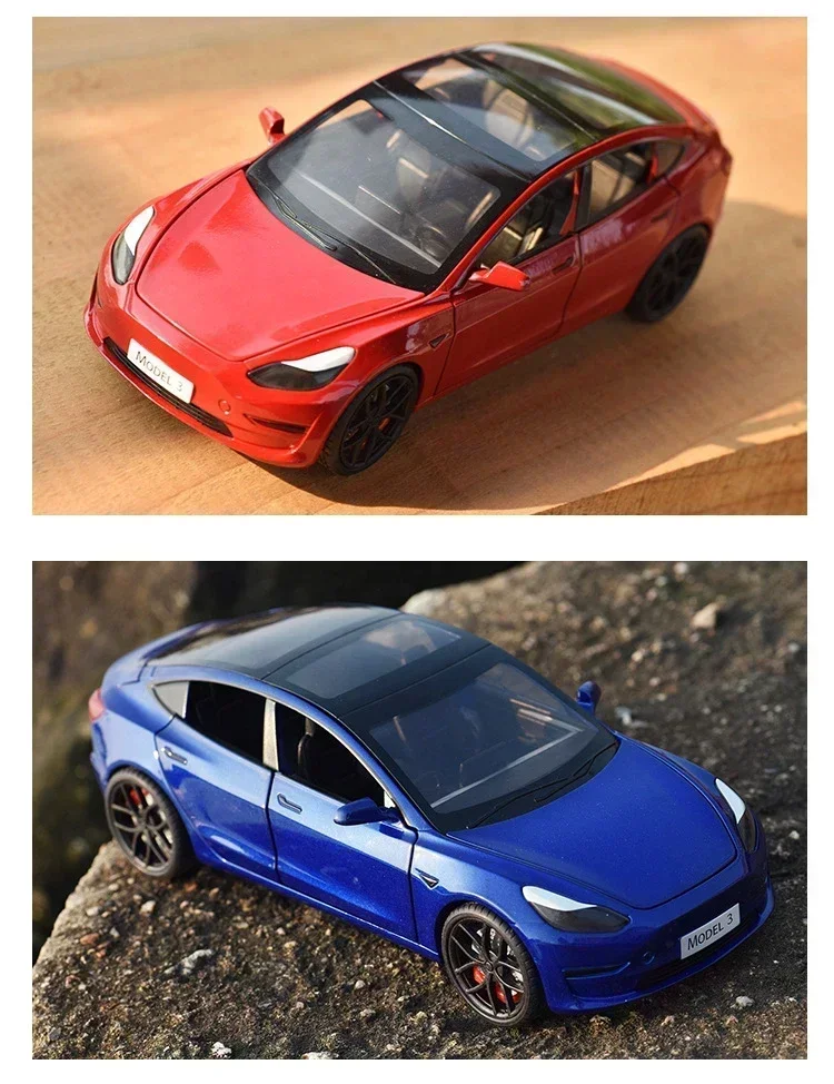 This 1:24 scale Model 3 car model features a sleek, diecast metal construction with a predominantly white body and a glossy black roof for a striking two-tone aesthetic. It comes equipped with stylish black rims and signature front lighting, along with distinct tail lights that reflect the authentic design of the Model 3. A small “MODEL 3” badge on the front bumper adds realism. The model operates on a button battery and is available in various color options: red, gray, blue, white, and black, with choices for including or excluding the original box. Perfect for collectors and enthusiasts.