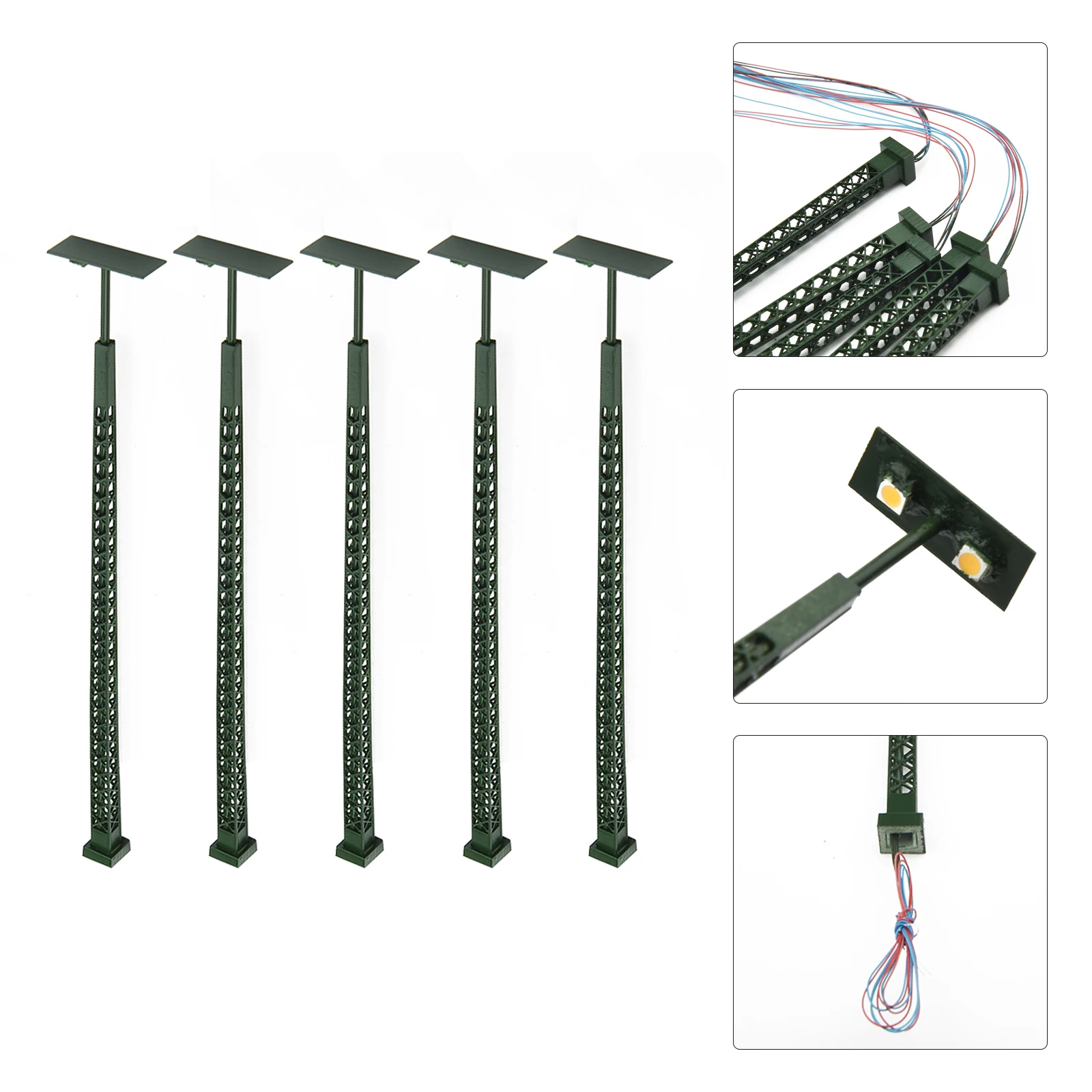 Enhance your model railroad layout with this set of five high-quality LED lamps designed for 1:87 scale H0 gauge models. Each lamp features a durable metal base with a warm, yellowish LED emitting a 20mA current at 3V DC or AC. The lattice-style black supports add a realistic industrial touch, making your setup more authentic. Included series resistors allow safe connection to 12-16V power supplies, preventing damage to the LEDs. Perfect for hobbyists seeking detailed lighting accents, these lamps are brand new and crafted to deliver reliable, consistent illumination for your model trains and scenery, elevating your layout’s realism with ease.