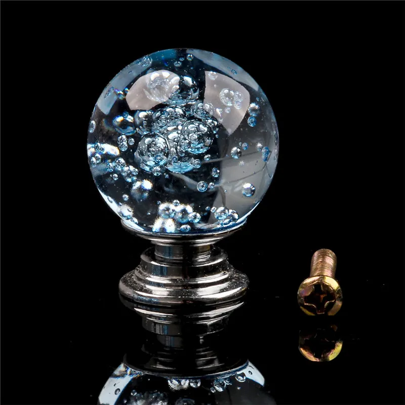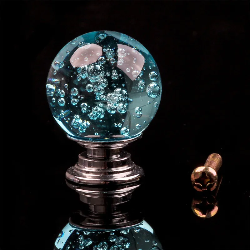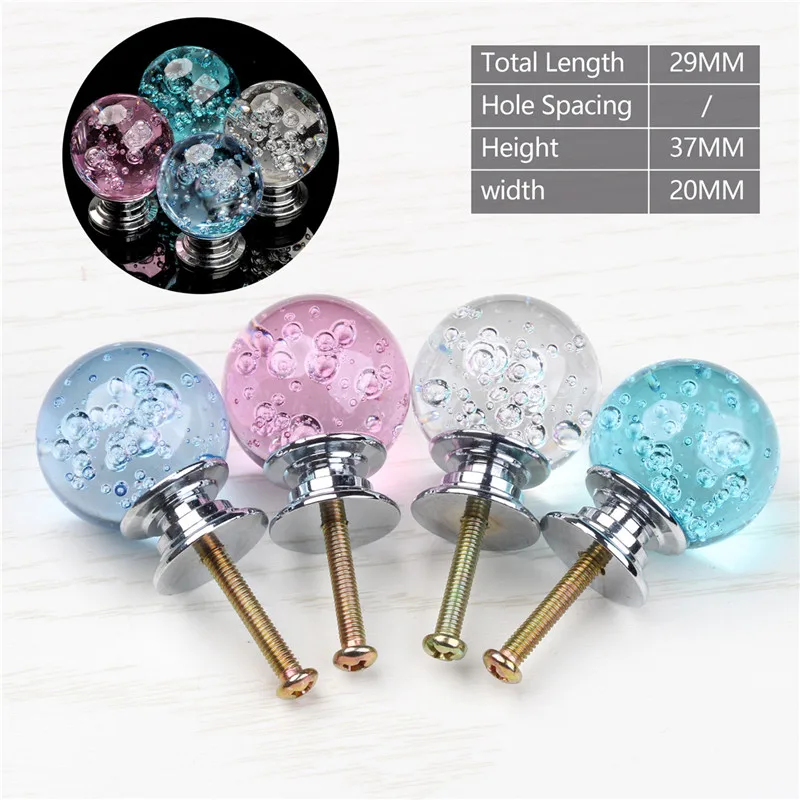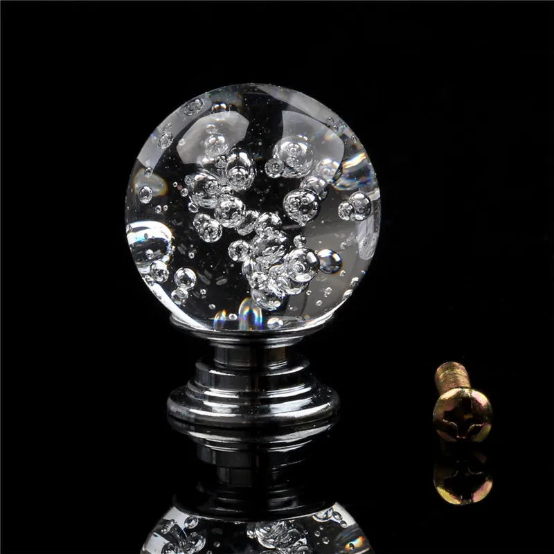 - These stylish knobs have a 20mm diameter crystal glass sphere with embedded tiny bubbles, creating a captivating bubble-injected aesthetic suitable for modern furniture upgrades.