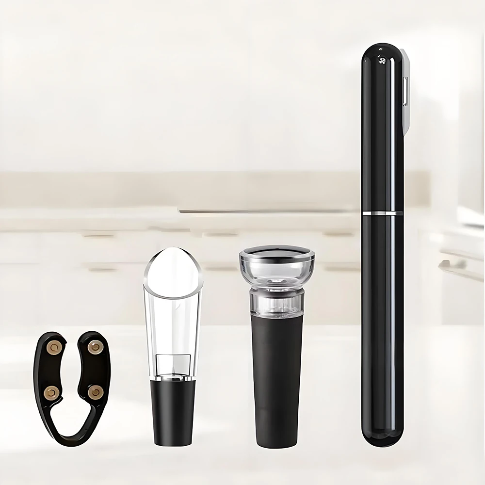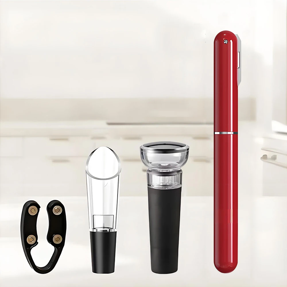 Imagine elevating your wine experience with this sleek, stylish set of four essential bar tools. Crafted for durability and ease of use, these tools combine practicality with a modern aesthetic that complements any bar or kitchen space. The black and red color options add a bold touch to your collection, while the plastic and stainless steel-like materials ensure longevity. Whether sealing bottles with the vacuum stopper, pouring with the clear wine pourer, sealing with the stopper, or removing corks with the elegant corkscrew, this set provides all you need for perfect wine service. Designed to fit seamlessly into your lifestyle, you'll enjoy creating memorable moments with friends and family, confident in the quality and functionality of these tools.