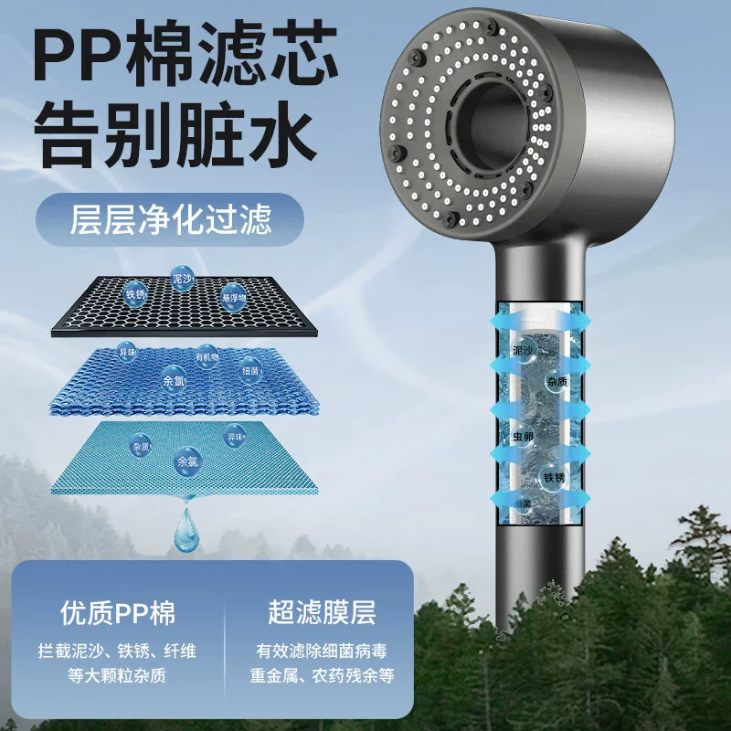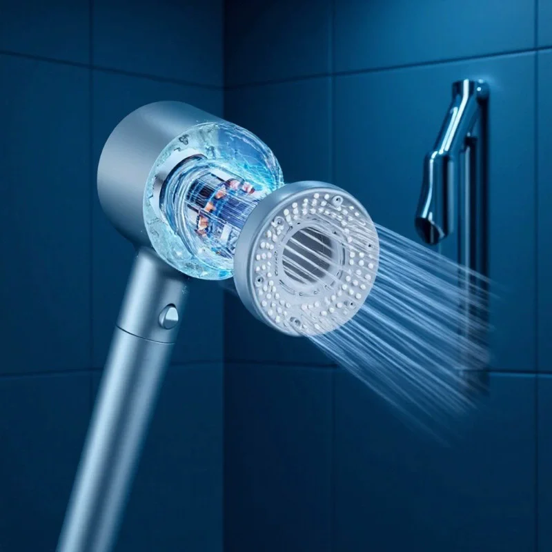 Experience a modern, sleek design with this adjustable hand-held shower head featuring five versatile spray modes, including a high-pressure option, for personalized water flow. Crafted from durable ABS plastic with a polished chrome finish, it offers water-saving capabilities and a pressurized spray for a refreshing shower experience. Available in blue, white, and grey, it accommodates hoses up to 1.5 meters long in white, black, silver, or grey, ensuring compatibility with various bathroom setups. Its round shape and smooth surface provide a stylish look, while support options include fixed or semi-fixed mounting for convenience. Elevate your bathroom with this functional, high-performance shower head.
