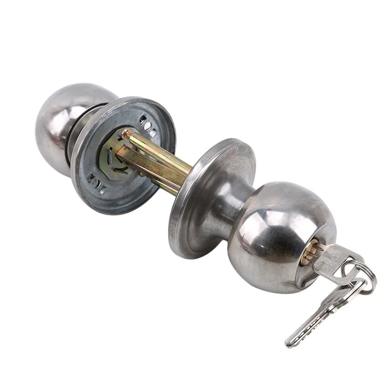 Enhance your space with this sleek aluminum alloy round door knobset featuring a contemporary silver finish. Measuring 18 cm in length with an oval diameter of 5 cm and a lock head of 9.5 x 6 cm, it offers a modern aesthetic combined with practical security. The set includes a key and outside keyhole, an emergency release slot for safety, and is adjustable to fit door thicknesses between 25 mm and 45 mm with a backset of 60 or 70 mm. Lightly sprung for smooth operation, it comes complete with all fittings, making installation quick and easy for bedrooms, living rooms, or bathrooms.