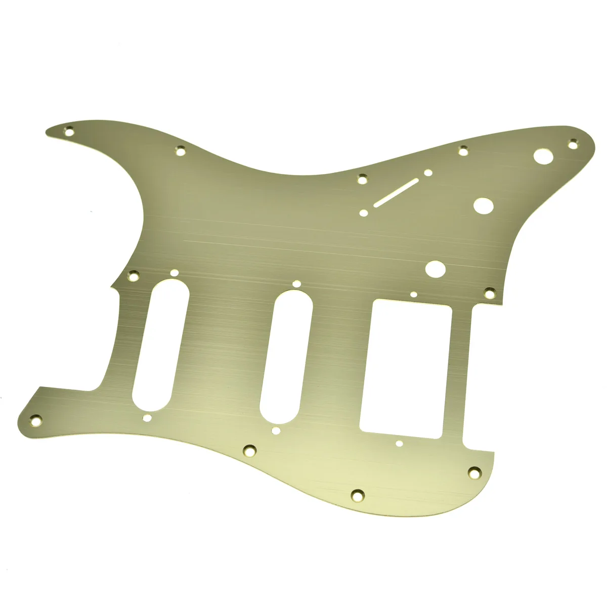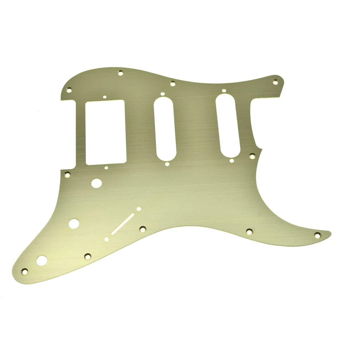 Experience a stunning upgrade for your Fender Strat with this high-quality anodized aluminum pickguard. Designed for modern American or Mexican Stratocasters, it offers a sleek metallic appearance in silver, black, or gold. The 1.5mm thick material ensures durability and a premium feel, transforming the look and sound of your guitar. With precise cutouts for two single-coil pickups, one humbucker, and control knobs, this pickguard combines form and function. Its brushed or matte finish adds a sophisticated touch, making your guitar stand out on stage or in the studio. Perfect for customizing your instrument, this pickguard feels sturdy and looks exceptional, elevating your playing experience and aesthetic instantly.