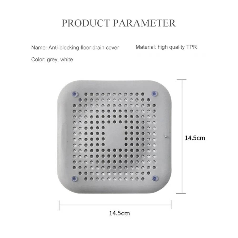Experience a cleaner and more efficient bathroom environment with this this modern drain hair catcher. Crafted from durable, high-quality TPR material, this grey or white cover seamlessly combines practicality with sleek design. Its minimalist rectangular shape with rounded edges blends effortlessly into any drain setup, providing a discreet yet effective solution for hair and debris blocking. The well-organized grid of small circular holes allows water to flow freely while preventing clogs, making maintenance simple and hassle-free. Designed with four translucent suction cups, this cover attaches securely to flat, unobstructed drain surfaces, ensuring stability during use. Enjoy a tidy bathroom or kitchen with ease of installation, cleaning, and reuse, all while maintaining a modern aesthetic.