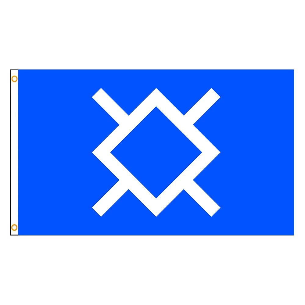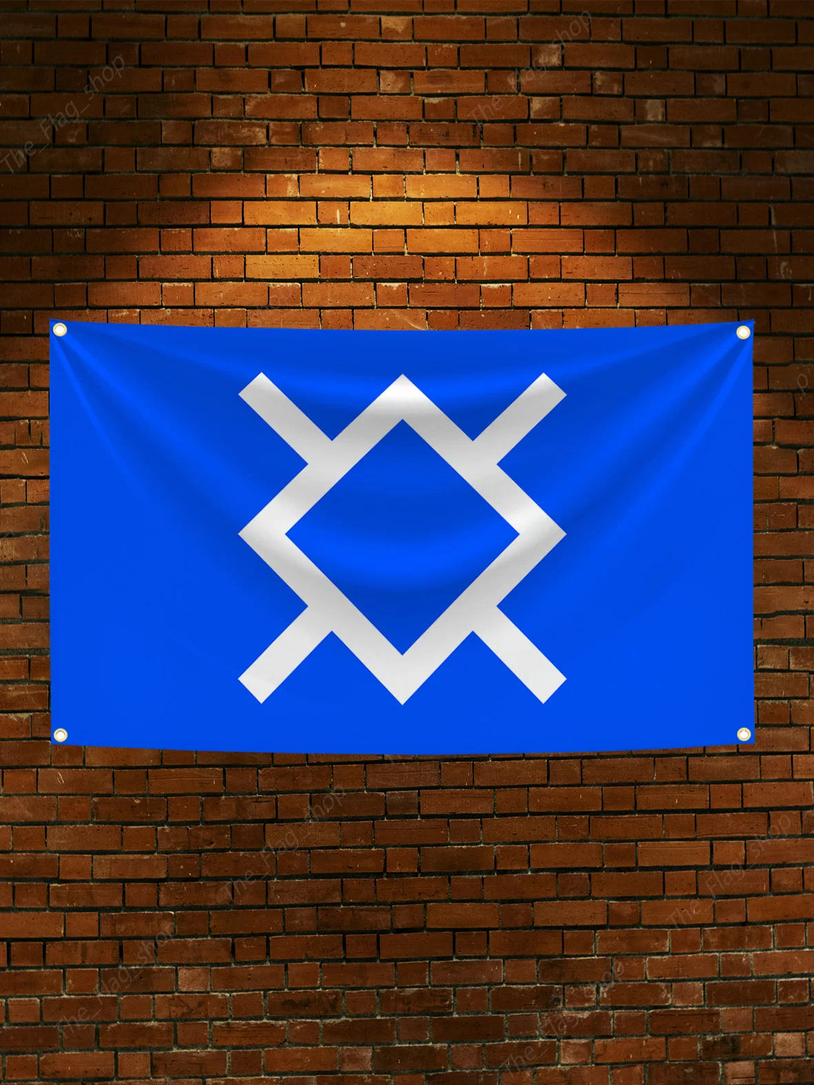 Imagine elevating your space with this striking flag that commands attention. Crafted from high-quality polyester with a glossy finish, it boasts a vibrant blue background accented by a bold, white geometric design. Its sleek, contemporary style makes it a perfect addition to your home, office, or event backdrop, creating an instant impression of professionalism and modern elegance. The high-contrast, sharp-edged pattern draws the eye, while the durable fabric ensures it remains vibrant over time. With reinforced corners and metal grommets, hanging your new decorative piece is effortless and secure. Bring energy, style, and a touch of sophistication to your decor with this eye-catching banner.
