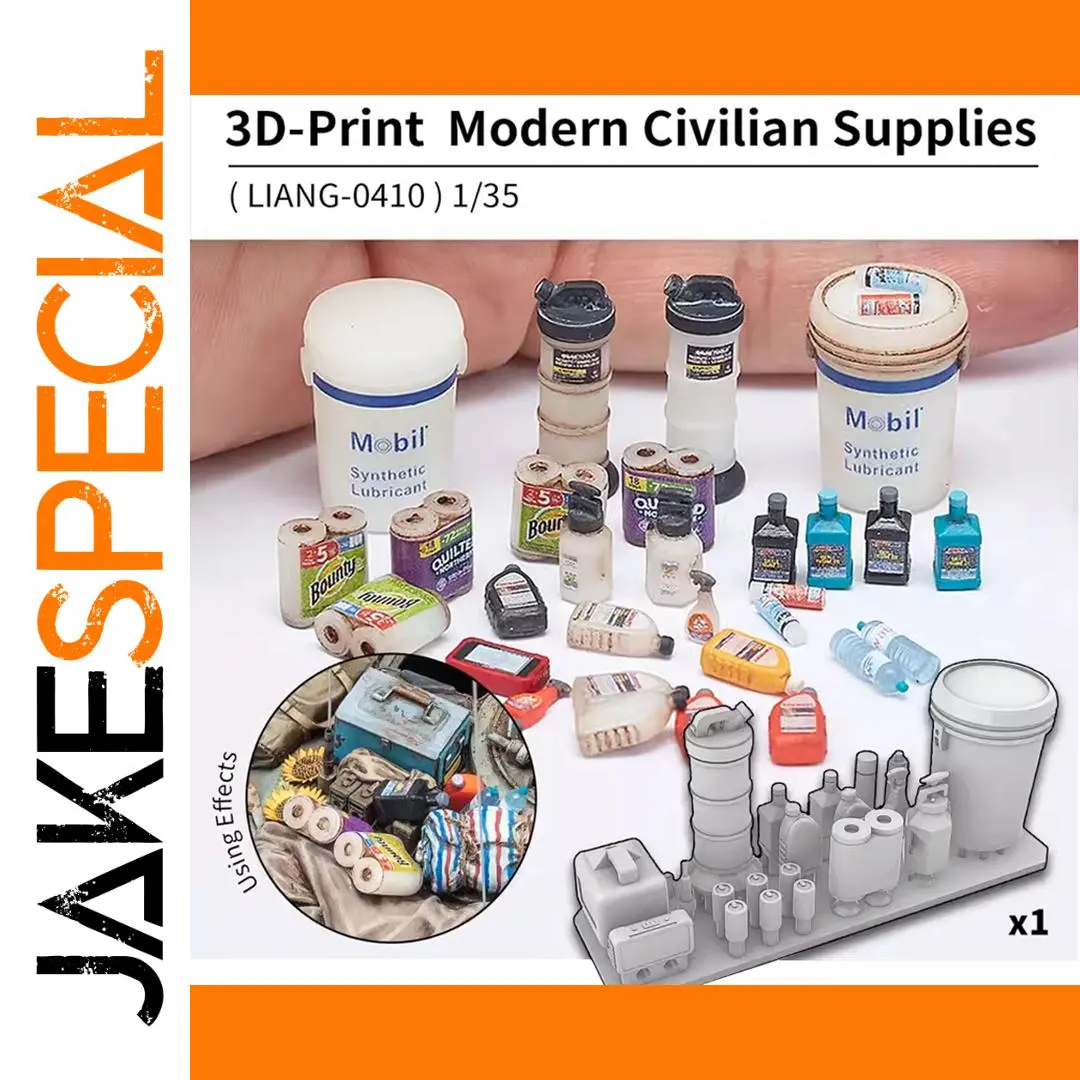 Imagine enhancing your model scene with this highly detailed kit that brings everyday industrial and civilian supplies to life. Crafted with precision using high-quality resin and vibrant color details, this set features a variety of miniature objects like a large white oil drum with ridged textures, and an easy-open drink can in lively colors such as yellow and purple. These accessories are perfect for creating authentic scenes involving maintenance, transportation, or modern urban environments. The realistic surface textures, printed labels, and glossy finishes capture the essence of real-world containers, adding depth and authenticity to your diorama. Whether for display or customization, this kit offers an immersive experience, turning your scene into a vivid, believable mini-world.