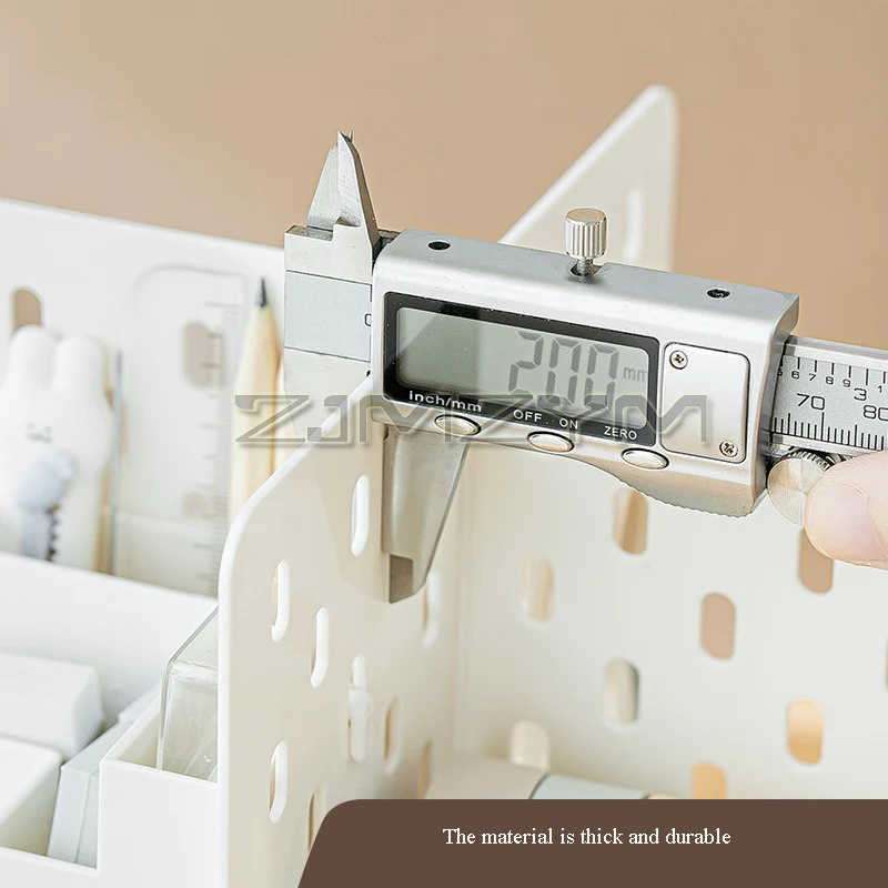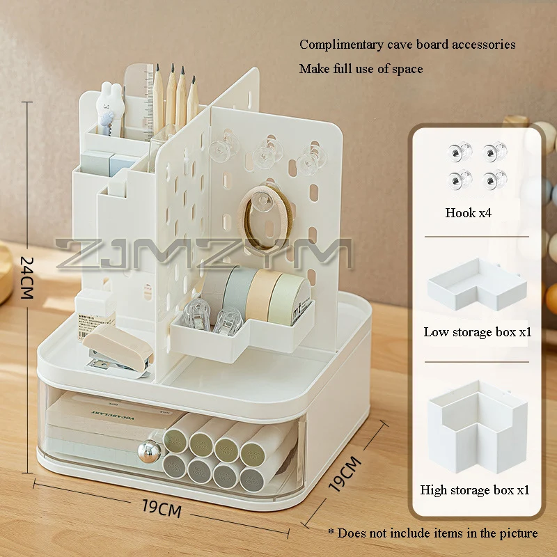 Transform your workspace with this sleek and functional desktop storage box. Designed for efficiency and style, it measures 19x19x24 cm and combines durability with minimalist elegance. Crafted from high-quality ABS and PS materials, it features a perforated, rotatable cavity plate with multiple compartments for pens, pencils, markers, and small accessories. The drawer-style compartment offers additional storage, seamlessly integrated into the modern design. This versatile organizer supports hanging, wall-hanging, and free-standing use, making it ideal for student desks or professional workspaces. Its clean lines and smooth rounded edges create an unobtrusive aesthetic that complements any decor. Bring order and sophistication to your desk, reducing clutter while maintaining a tidy appearance effortlessly.