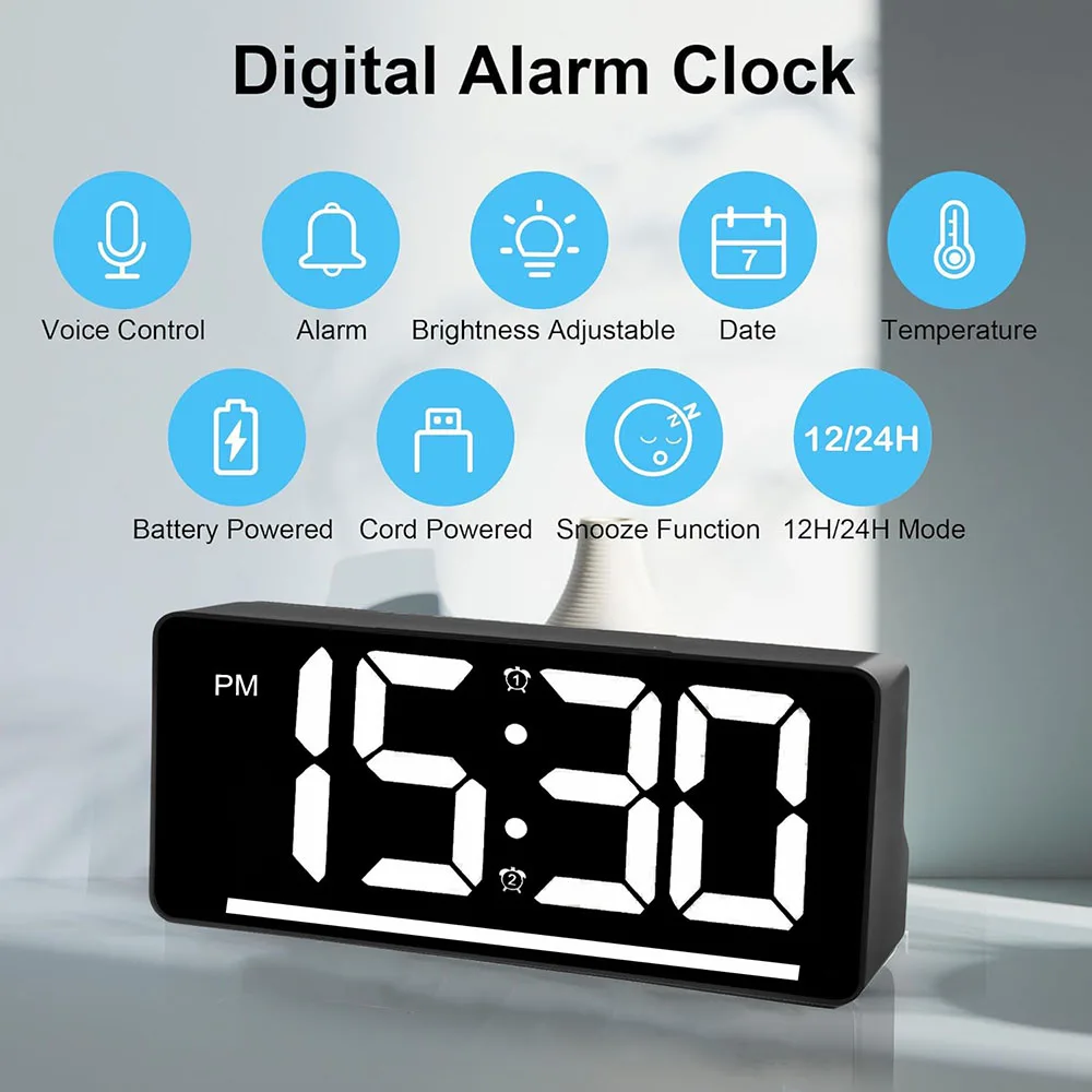 Envision yourself waking up refreshed and entering your workspace with this stylish and highly functional alarm clock. Its large display, adjustable brightness, and versatile alarm settings ensure you stay punctual and organized effortlessly. Feel confident that this device will blend seamlessly into your daily routine, bringing comfort and clarity to your environment. Don't miss out—transform your space with this elegant, reliable clock that combines modern design with practical features. Add it to your cart now and enjoy hassle-free mornings and punctuality always at your fingertips.