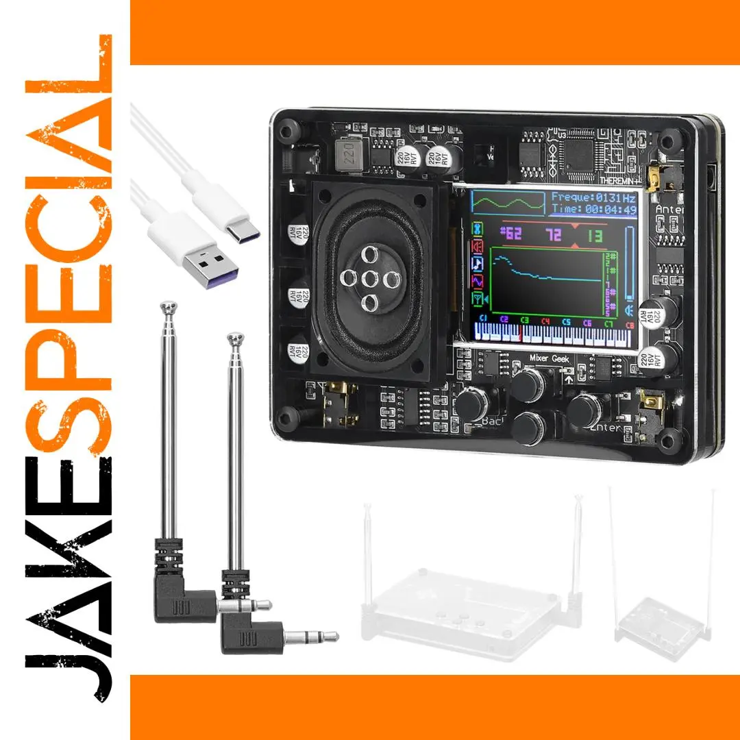 Experience the future of musical expression with this modern audio theremin module, designed for enthusiasts who appreciate sleek aesthetics and advanced digital features. Compact and lightweight, measuring just 98mm by 70mm and weighing only 170 grams, it fits comfortably in your hand. Its striking black plastic body is complemented by metallic accents, giving it a high-tech appearance. The vibrant color screen dominates the front, vividly displaying waveforms, frequency graphs, volume levels, pitch indicators, and piano pitch displays in dynamic colors against a dark background, creating a futuristic look. The device’s minimalist control layout, featuring four small, raised buttons, offers intuitive navigation. The foldable metallic antenna adds an industrial touch and wireless capabilities, perfect for on-the-go music creation and experimentation.