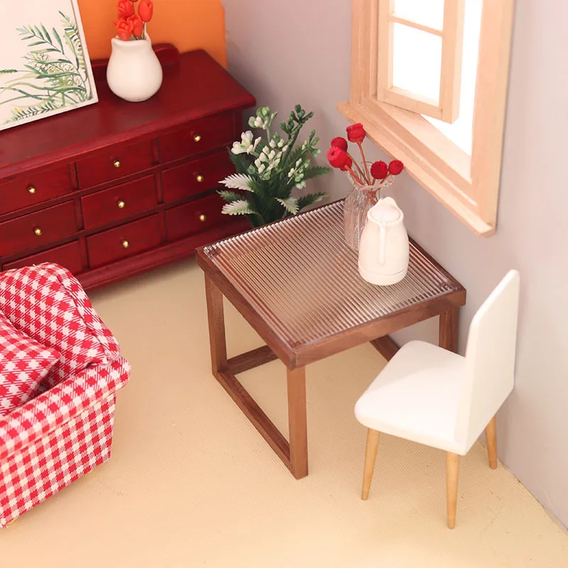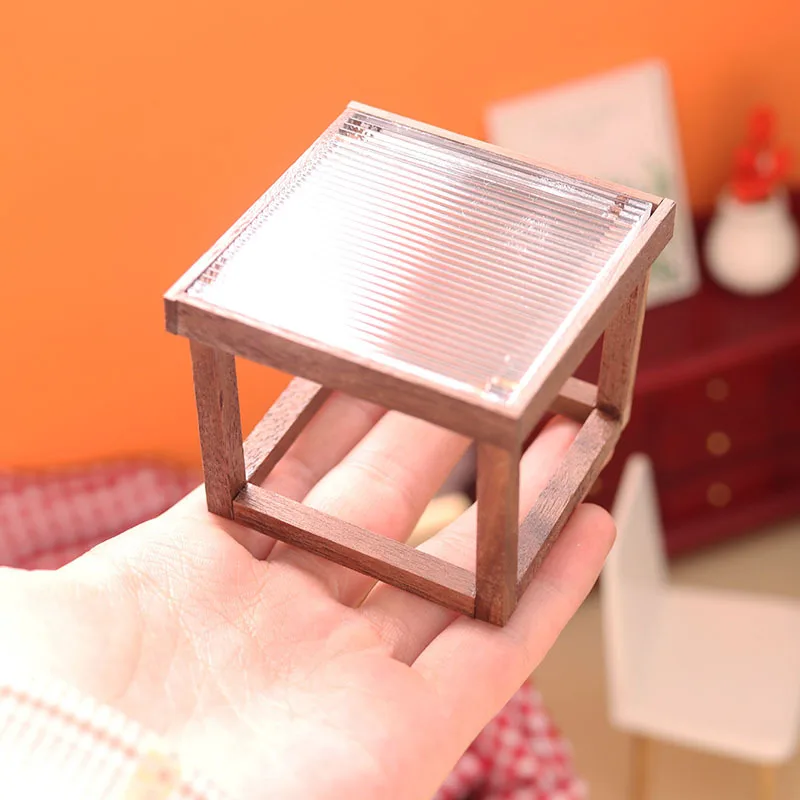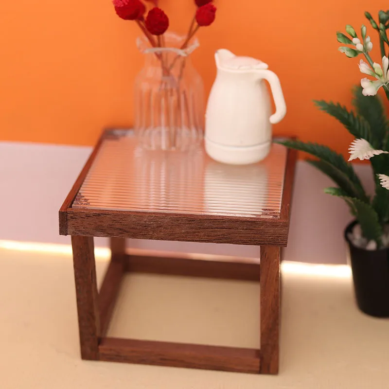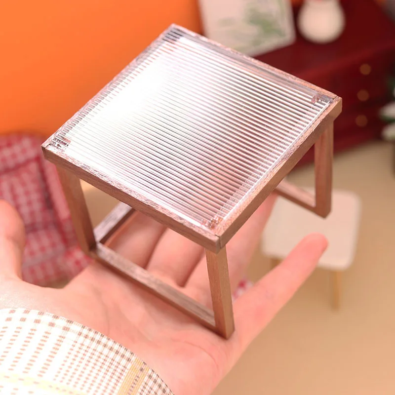 Elevate your dollhouse decor with this sleek modern coffee table, crafted from wood with a refined transparent black walnut finish. Designed for 1/6 and 1/12 scale dollhouses and dolls, it features a minimalist rectangular tabletop with a subtle tiered side and an open slatted storage space underneath, supported by four straight matching legs. Its contemporary design is highlighted by a ribbed or slatted side detail, adding visual interest and texture. The natural wood tones and smooth surfaces create an elegant, modern aesthetic perfect for enhancing any miniature interior. Available in colors labeled ‘L’ and ‘S’, this dollhouse miniature is a versatile and stylish addition to your miniature collection.