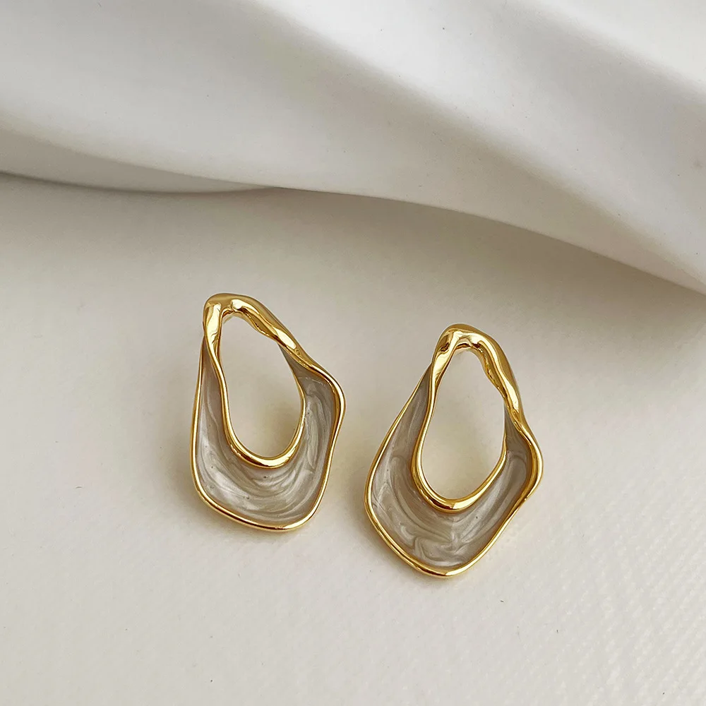 Step into contemporary elegance with this stylish pair of gold-toned, asymmetric earrings. Designed with a modern aesthetic, these earrings feature an irregular, free-form drop shape that exudes artistic flair. Crafted from lightweight zinc alloy, they offer comfort without compromising on luxury. The intricate geometric outline, combined with the soft, pearlescent inner element, creates a captivating contrast that enhances any outfit. Perfect for adding a touch of sophistication to both casual and formal looks, these earrings embody trendy luxury while maintaining their noble, fashionable appeal. Securely fastened with push-back closures, they stay comfortably in place, making them ideal for daily wear or special occasions. Experience a blend of artistic design and modern style with these versatile accessories.