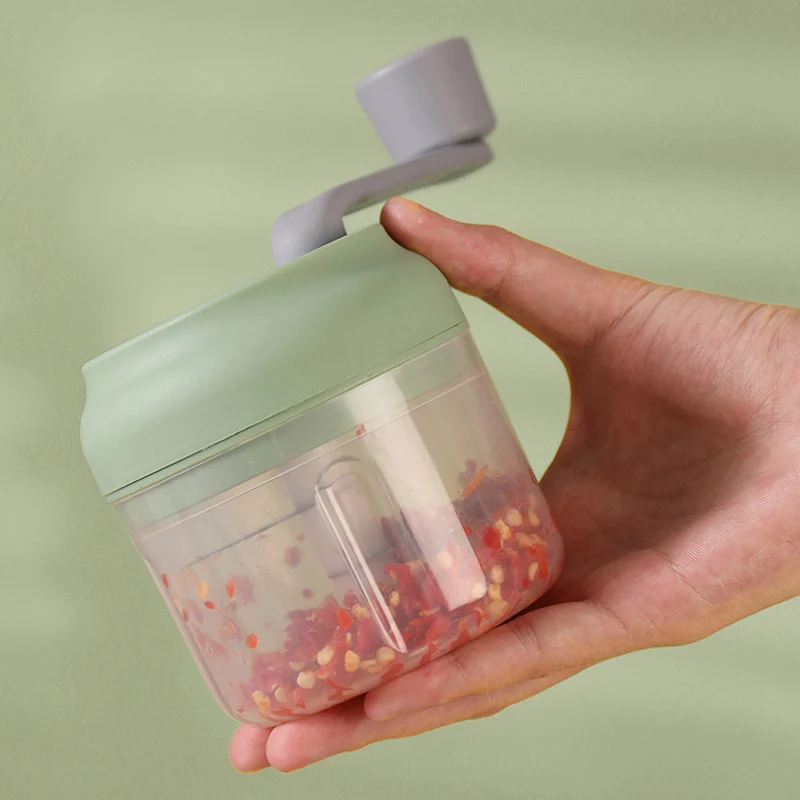 Imagine effortlessly preparing fresh garlic, ginger, chili, or even fruit and meat with this sleek, modern garlic chopper. Its transparent cylindrical body allows you to see your ingredients as you process them, making cooking more satisfying. The soft pastel green lid and rounded crank handle add a touch of contemporary style while ensuring comfortable operation. Whether you choose the 100ml or 250ml size, this eco-friendly device is perfect for quick, multi-purpose food prep. Its durable ABS construction guarantees long-lasting use, and its simple design makes cleaning a breeze. Make your kitchen tasks easier and add a fresh aesthetic to your countertop with this versatile, manual chopper. Experience the joy of effortless chopping today!
