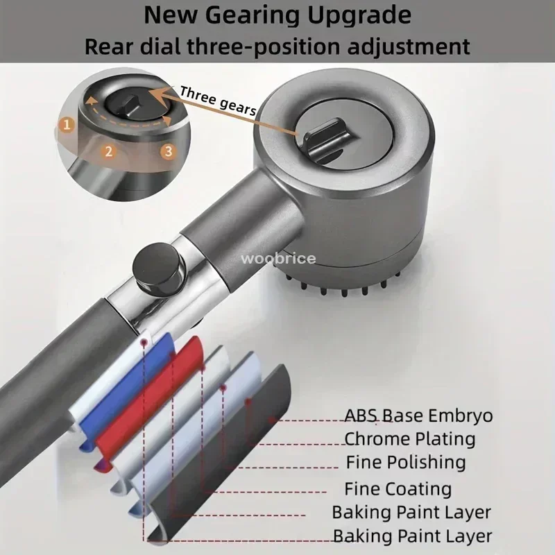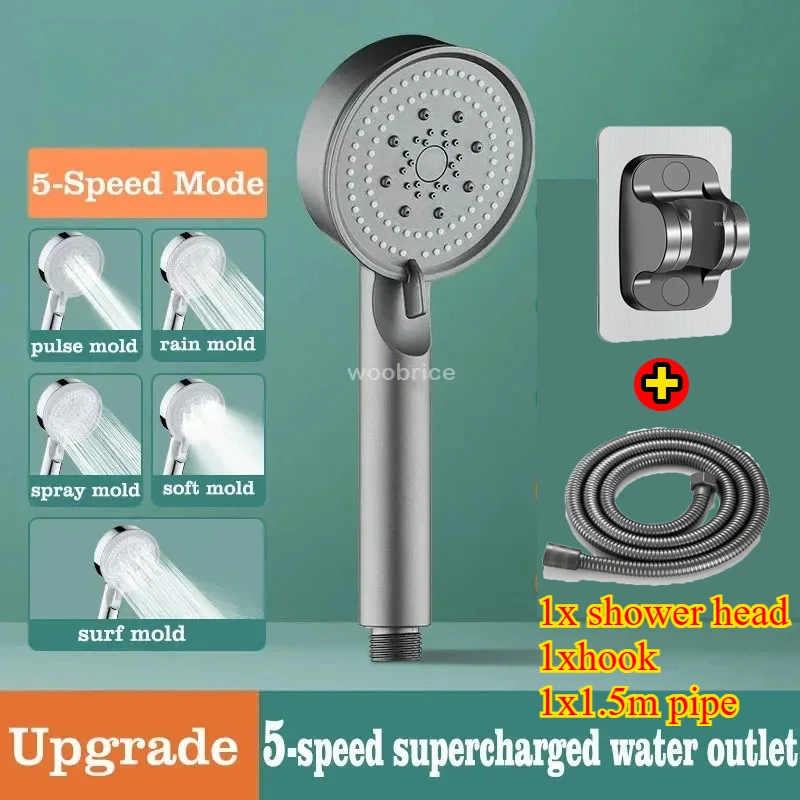 Transform your bathroom experience with this modern high-pressure shower head set, featuring adjustable spray modes including pulse, mixed, and atomization for gentle, skin-friendly water flow. Crafted from durable ABS with a polished, matte finish, it offers rust and corrosion resistance in sophisticated grey or black tones. The set includes a handheld shower head with a G1/2 hose, adjustable height, and a convenient water stop switch. Equipped with a multi-micron PP cotton filtration system, it effectively removes sediments, iron filings, and impurities, promoting healthier skin and hair. Ideal for residential use, camping, or outdoor adventures, this shower set combines functionality, hygiene, and elegance.