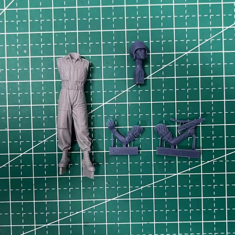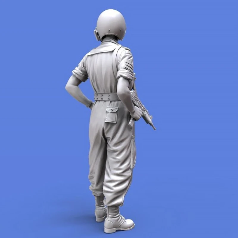 Bring your military modeling to life with this 1/35 scale resin figure kit, featuring unassembled and unpainted modern IDF tanker figures. Crafted from detailed resin, these miniature figures showcase realistic combat uniforms in shades of gray with finely textured fabric, folded short-sleeved shirts, cargo pants with detailed pockets, black combat boots with textured laces, and smooth, slightly tilted helmets with attachment details. The poses include a dynamic arm position with sculpted muscle definition, tactical gear, a wristwatch, and subtle seaming details. Perfect for micro scene layouts, this kit invites hobbyists aged 14+ to create highly realistic military dioramas, adding intricate detail and authentic character to any collection.