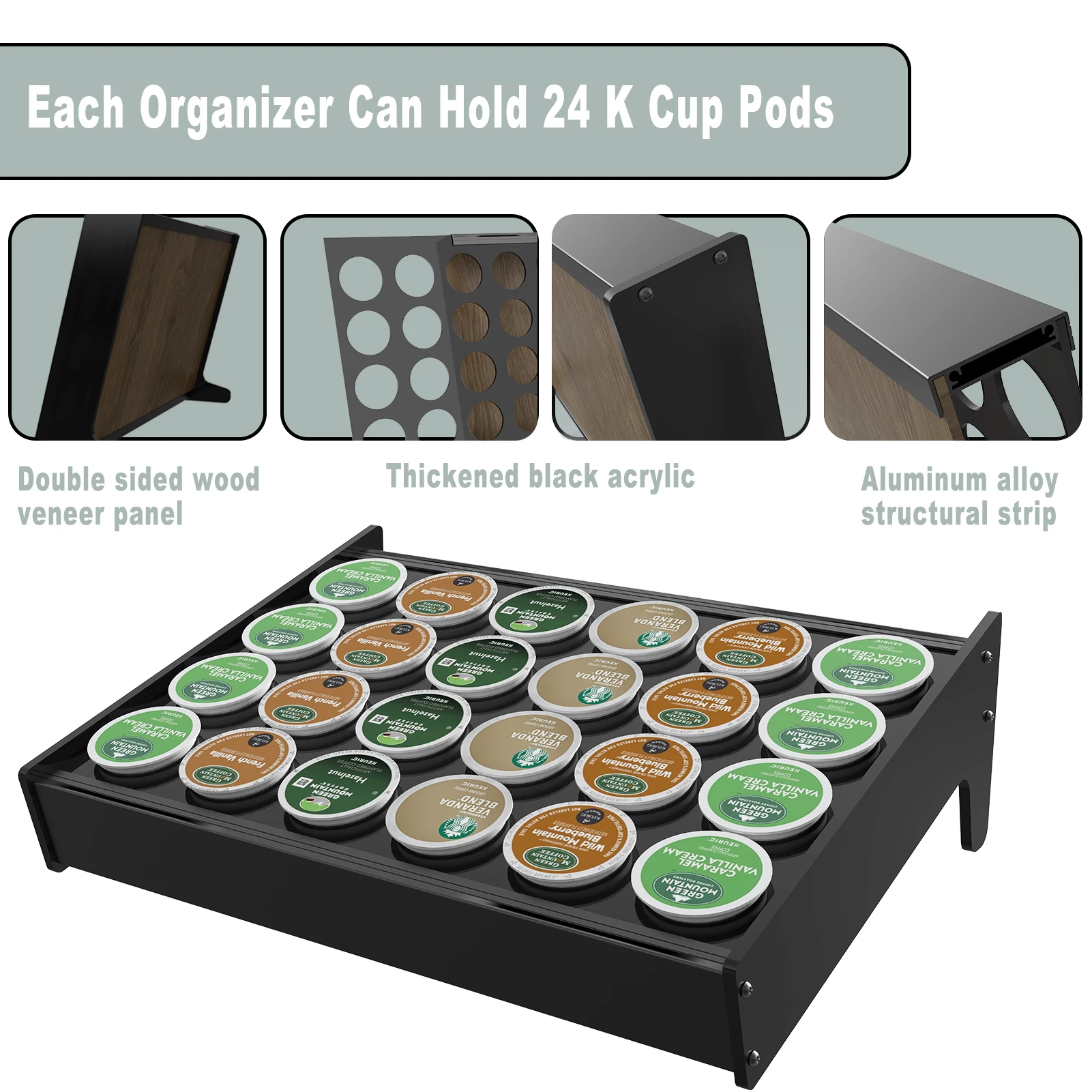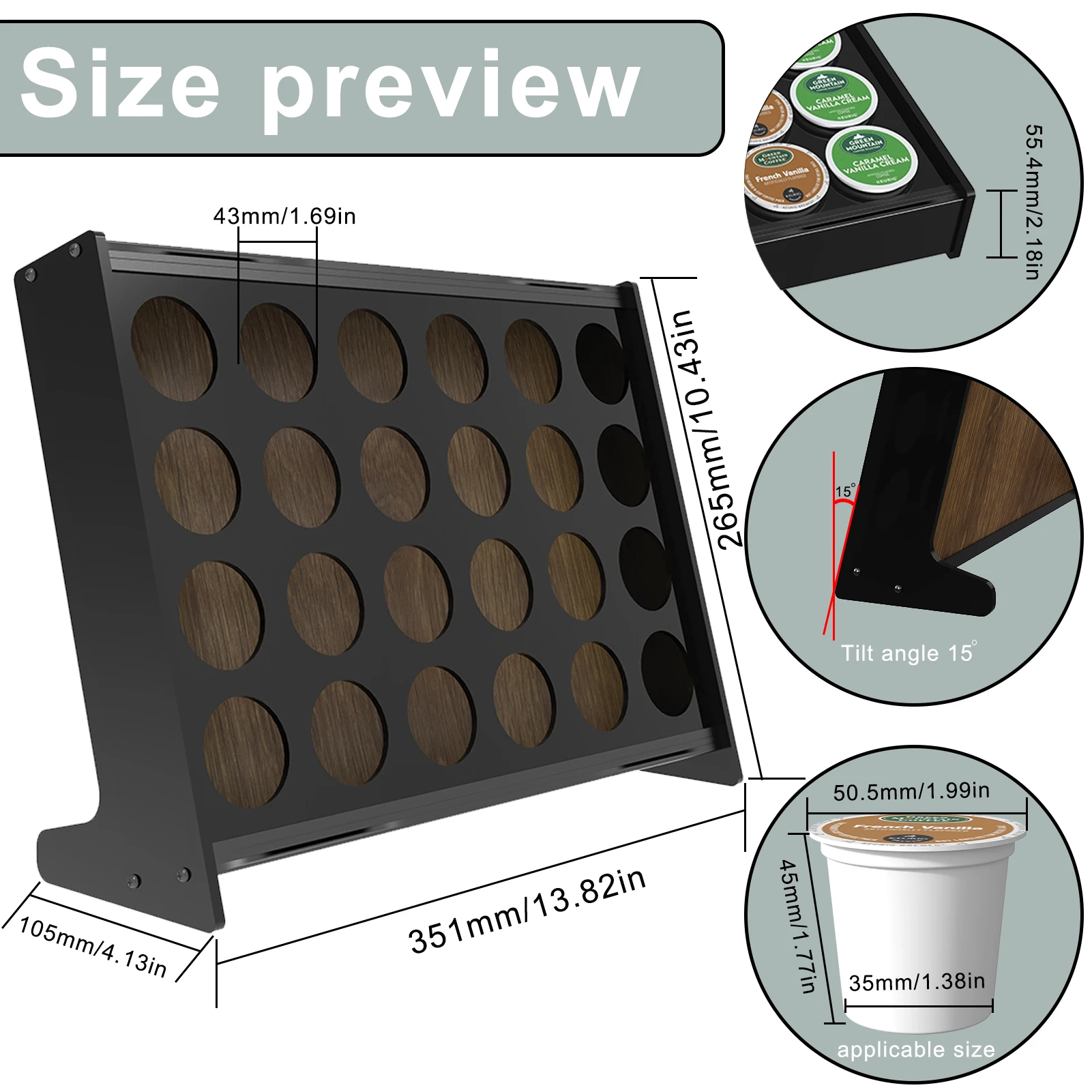 - Capacity of 24 K-cup pods with a 43mm open diameter, providing ample space for your favorite coffee flavors and easy identification of labels.
