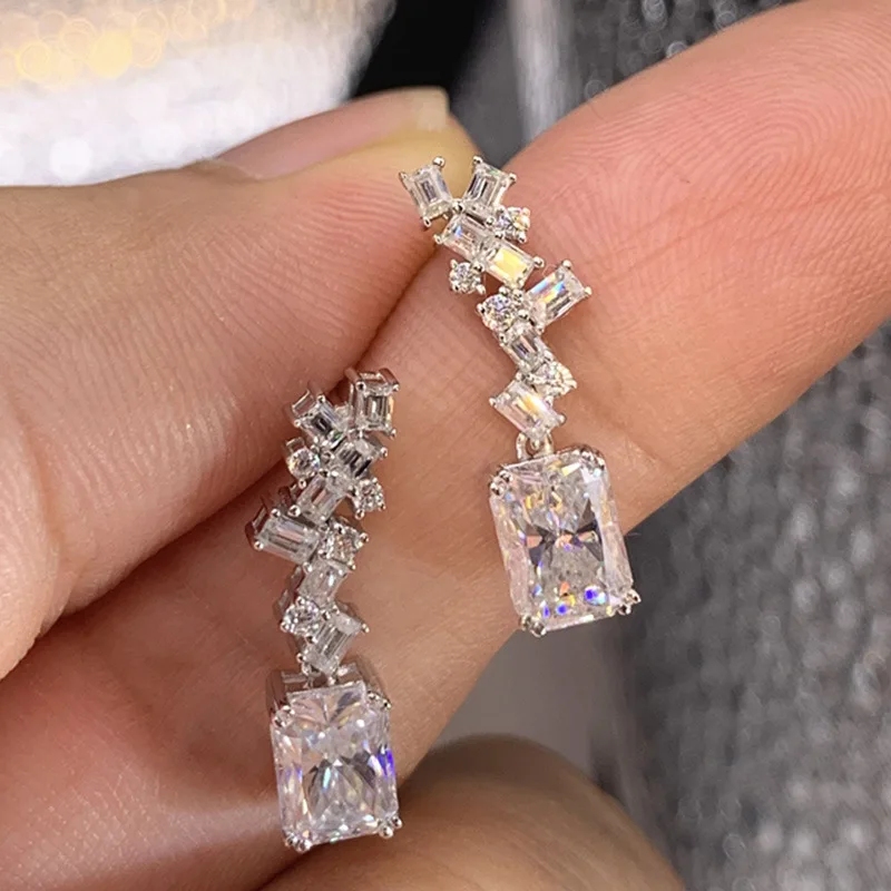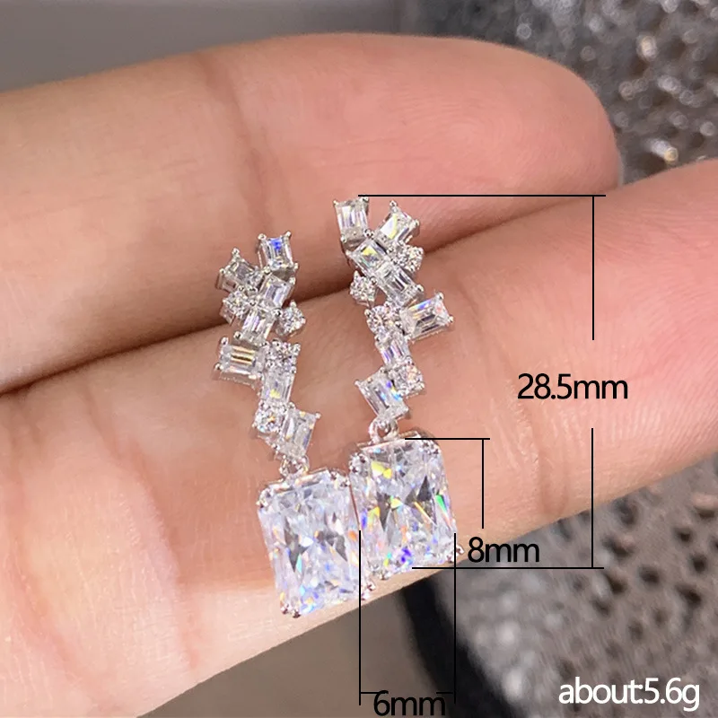Step into a world of contemporary elegance with this pair of this modern silver geometric earrings. Crafted from high-quality silver with a polished, reflective finish, these earrings combine minimalist artistry with bold sophistication. Their irregular, asymmetrical design features interconnected rectangular and square segments along a slightly zigzagging curve, creating a dynamic visual effect. Adorned in the center with a shimmering cubic zirconia, these stones catch the light beautifully, adding a luxurious sparkle that elevates any outfit. Weighing only about 4 grams, they offer all-day comfort without sacrificing style. Perfect for enhancing both casual and formal looks, this versatile piece promises to be a treasured addition to your jewelry collection, highlighting your individual taste and style.