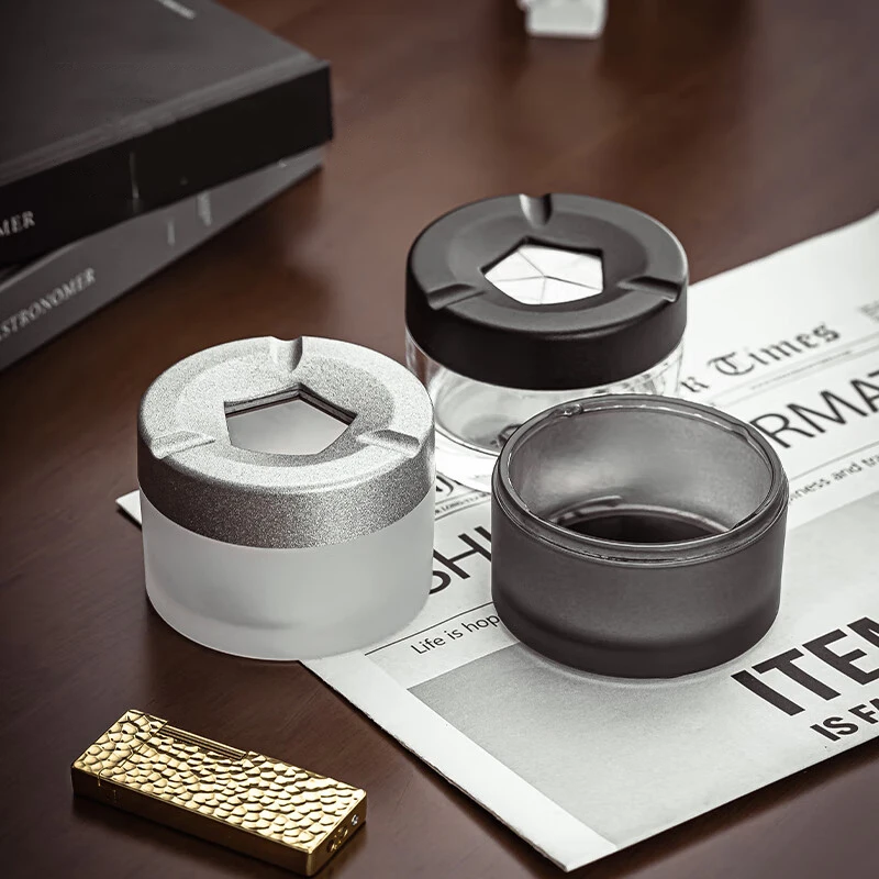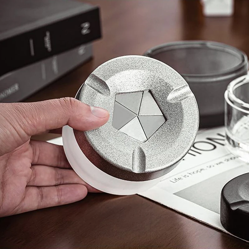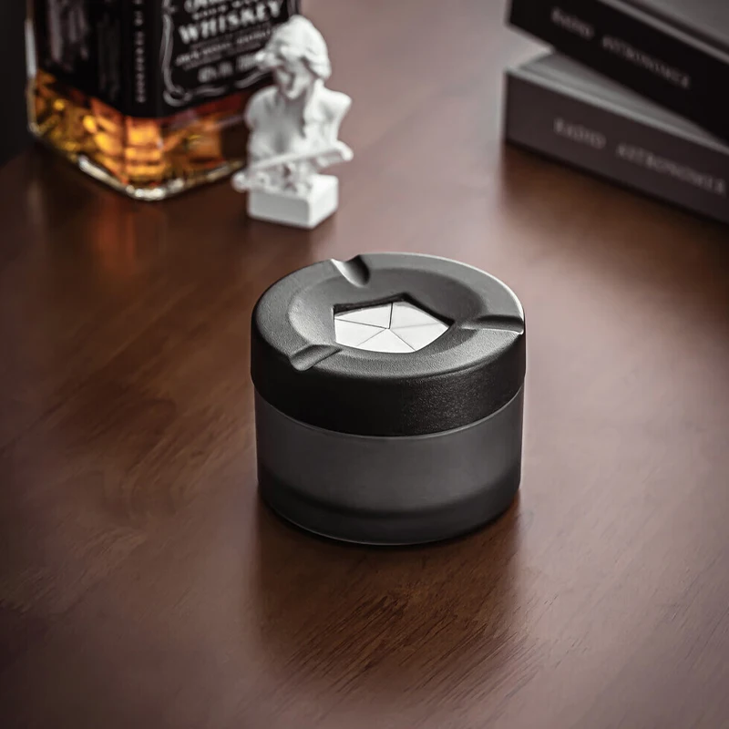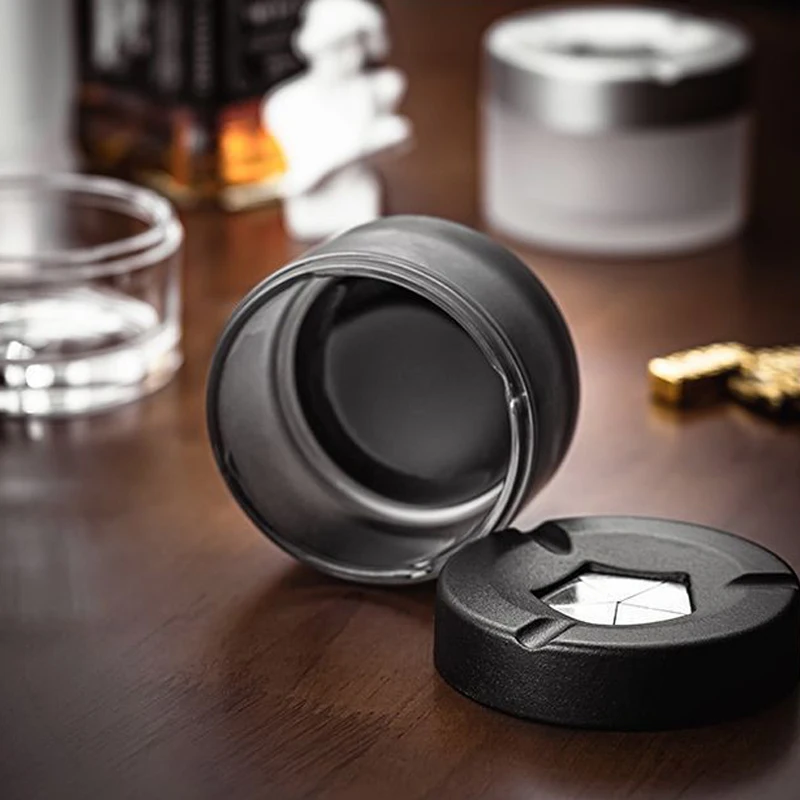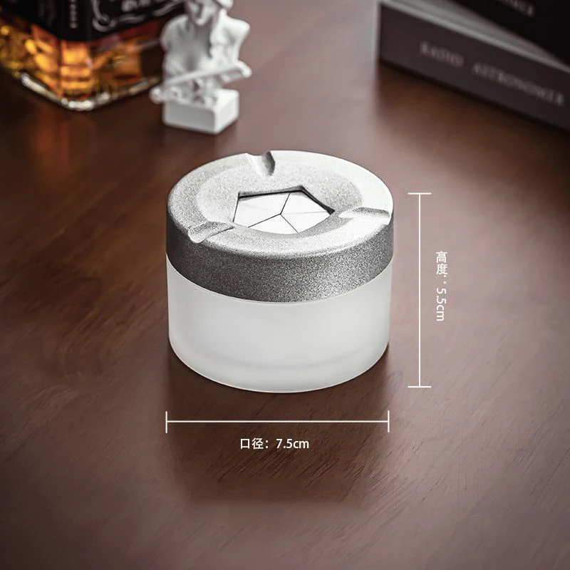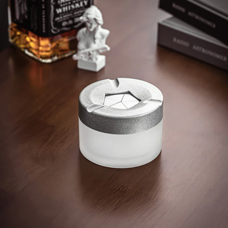 Experience modern convenience with this smokeless, portable desktop ashtray featuring a sleek round design crafted from stainless steel, aluminum alloy, and glass. Its durable construction ensures longevity while maintaining a refined aesthetic, available in white and black. The metallic silver lid with textured finish provides a secure cover to contain smoke and odor, making it ideal for household and office use. The foldable metal design adds portability and ease of cleaning, blending functionality with elegance. Elevate your smoking space with this minimalist, premium-quality ashtray that seamlessly complements contemporary décor and promotes a cleaner, more comfortable environment.