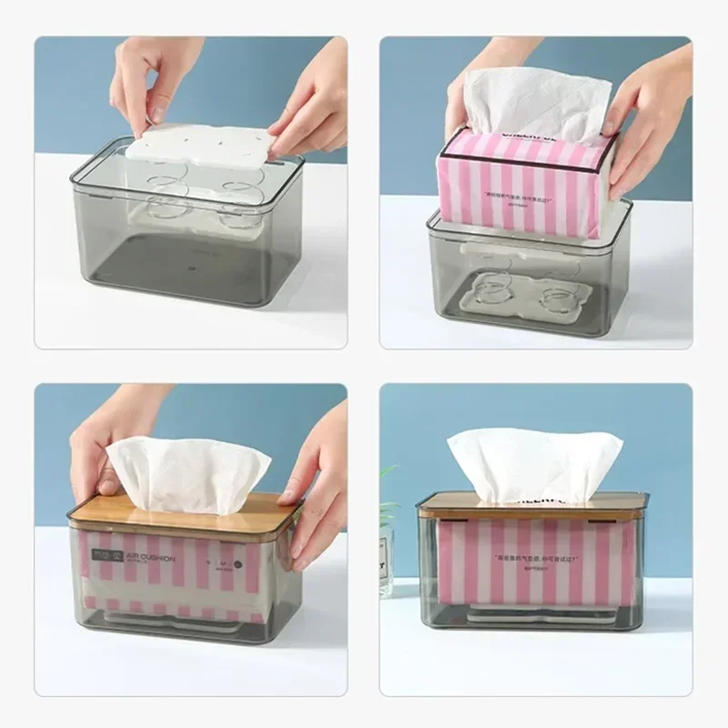 Transform your space with this sleek, modern spring tissue box holder that combines functionality with minimalist style. Crafted from high-quality plastic and metal, it features a durable double spring design that ensures resilience and smooth tissue dispensing, even when only 30-40% of the paper remains. Its compact size of 11.8 x 7.5 x 6.5 cm makes it perfect for placement on desks, countertops, or tables. The semi-transparent white body provides a lightweight, airy look, while the top surface may add a natural touch resembling wood, creating an elegant contrast. Designed for easy installation, this holder offers effortless tissue retrieval, making daily tasks simpler and more organized. It is eco-friendly, non-toxic, and built with safety in mind—no sharp edges, suitable for continuous use, and suits modern decor effortlessly.