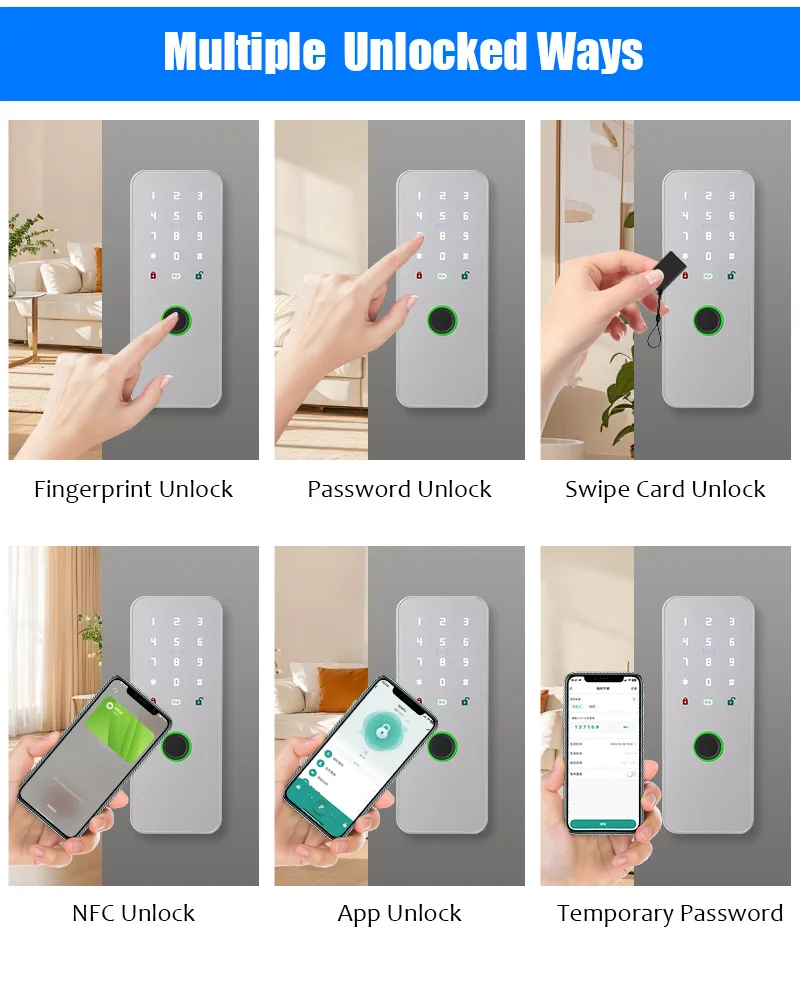 Maximize your home's security with this cutting-edge, durable, and stylish smart lock. Imagine the convenience of unlocking your door effortlessly with a fingerprint or remote, all while maintaining a sophisticated, modern aesthetic. Designed for outdoor resilience and everyday reliability, this lock provides an unobtrusive yet powerful security solution that fits seamlessly into your lifestyle. Take the step toward smarter, safer living today with this state-of-the-art WAFU smart lock—your assurance of protection combined with sleek design.
