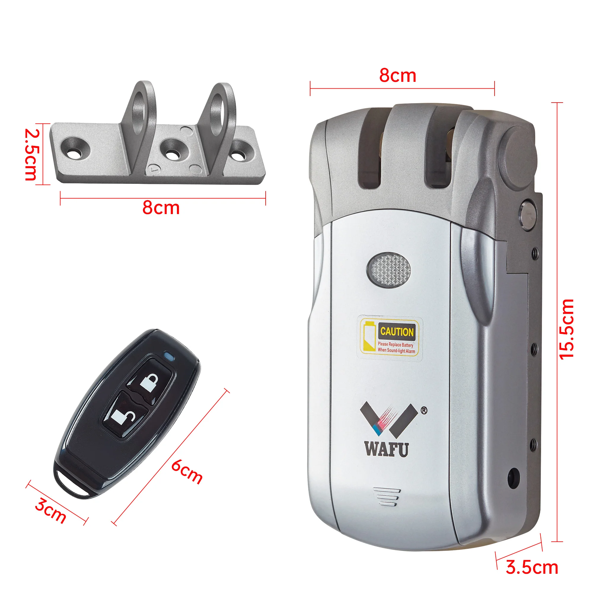 Experience the seamless blend of advanced technology and sleek aesthetics with this modern WAFU fingerprint and remote control smart lock. Measuring 155*96*80mm and weighing 700g, it features a minimalist design in elegant silver, blue, or gold finishes that complement contemporary decor. The lock is equipped with a touch-sensitive keypad, a prominent green-ringed fingerprint scanner, and a smooth, invisible deadbolt that resists prying attempts, ensuring top-tier security. Its compact form and clean lines create a sophisticated look suitable for outdoor use. With low power consumption, it runs up to 6 months on two standard batteries, providing convenience and peace of mind. Effortlessly unlock via remote control, fingerprint, or wireless signals, this lock combines technology and style effortlessly.