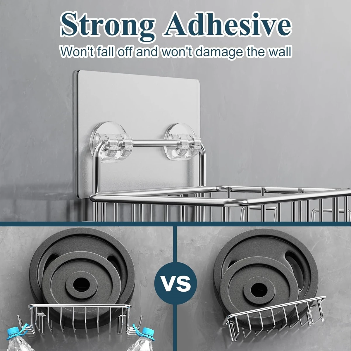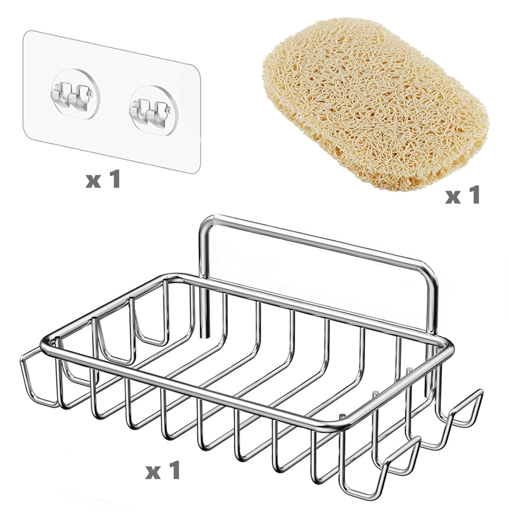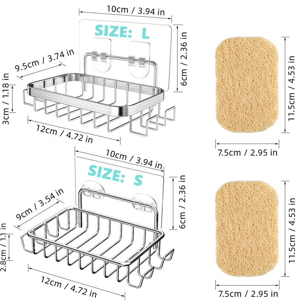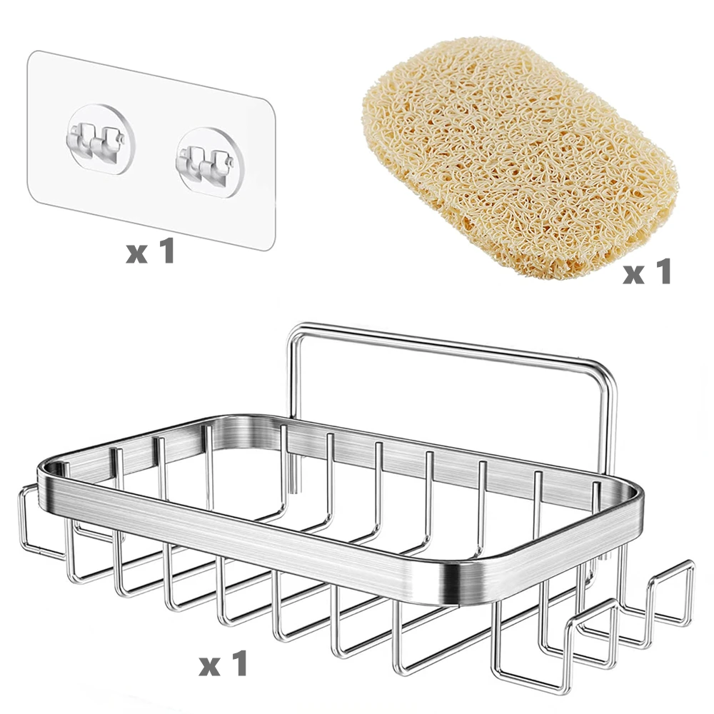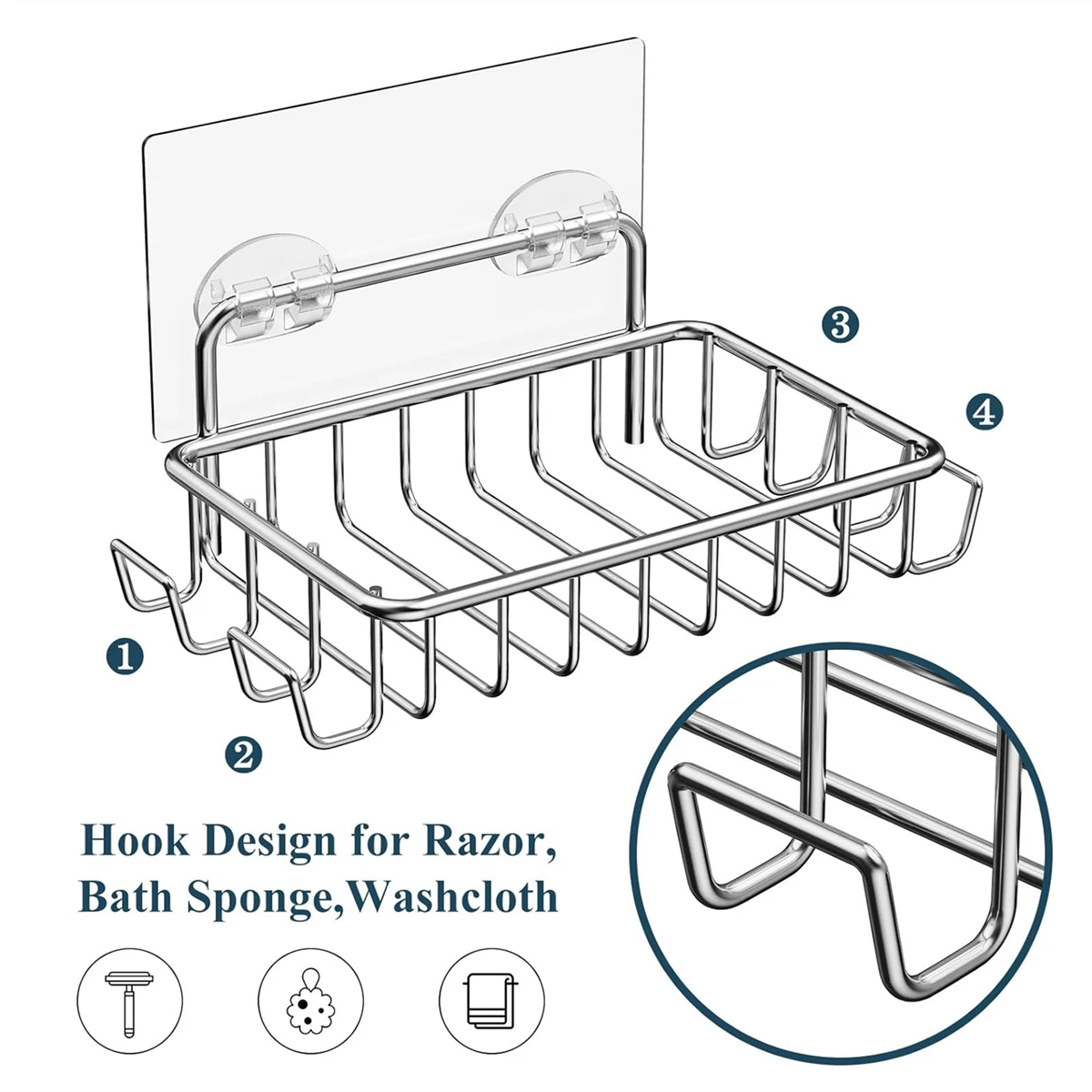Upgrade your bathroom or kitchen with this sleek, silver-colored stainless steel wall-mounted soap dish crafted from durable SUS 304 stainless steel. Featuring a modern rectangular design with a polished, reflective finish and rounded edges, this soap holder includes a water-draining grid, a removable soap saver tray, and four hooks for razors, washcloths, or sponges. Its easy, drilling-free installation uses adhesive backing to prevent wall damage and marks. Waterproof, rustproof, and easy to clean, this multifunctional soap dish offers both style and practicality, seamlessly integrating into your daily routine while maintaining a clean, contemporary look.