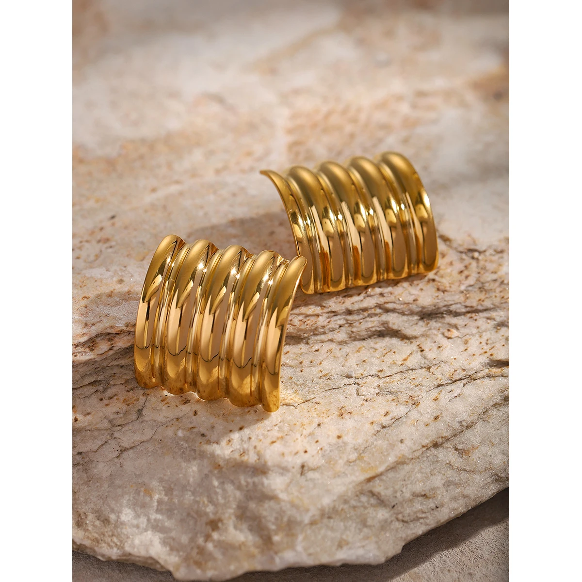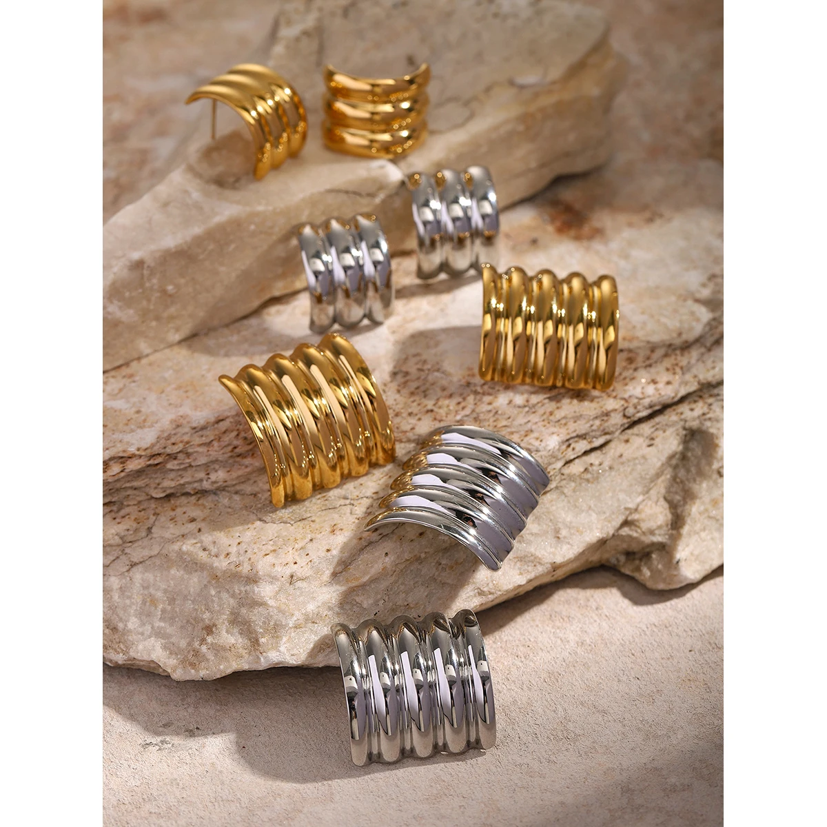 Elevate your style effortlessly with these this modern stainless steel wave ribbon earrings. Designed with a sleek, geometric semi-circular form, each pair features layered, ribbon-like bands that create a dynamic wave effect. The polished finish in silver-tone and gold-tone enhances their reflective, contemporary appeal, making them suitable for any occasion—from casual outings to formal events. Crafted from high-quality stainless steel, they are resistant to corrosion, water, and tarnish, ensuring durability and long-lasting shine. Hypoallergenic properties make them perfect even for sensitive skin, while the push-back closures provide a secure, comfortable fit. Add a touch of modern elegance to your jewelry collection now and enjoy versatile, stylish accessories every day.