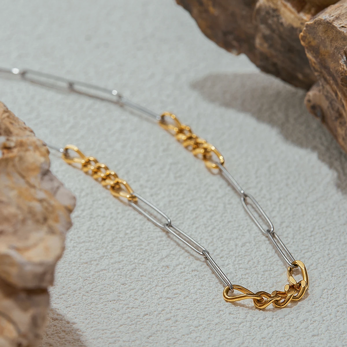 Modern Two-Tone Stainless Steel Necklace JDN0103030-PS