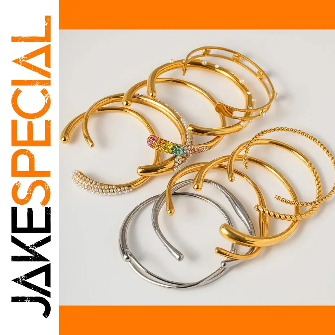 Experience the perfect fusion of contemporary style and durability with this unisex stainless steel bracelet. Its sleek geometric pattern offers a minimalist yet trendy aesthetic, ideal for enhancing your everyday outfits or making a statement at special events. Crafted from high-quality stainless steel with a durable gold-tone finish, this accessory resists tarnish and corrosion, ensuring long-lasting shine. The shiny metallic surface brilliantly reflects light, adding a touch of sophistication to your look. Versatile and stylish, it’s perfect for stacking with other jewelry or wearing alone. Available in multiple color options, this bracelet seamlessly complements various styles, making it an essential piece for those who value both fashion and resilience in their accessories.