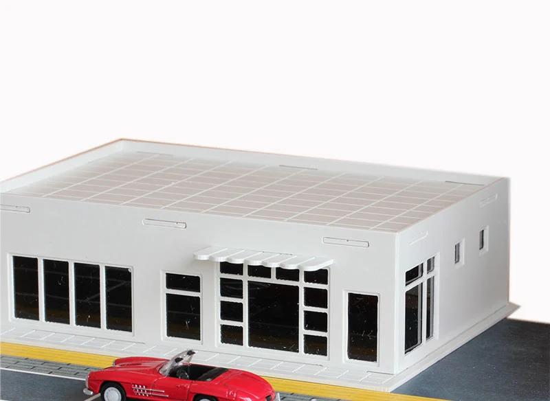 Imagine bringing a sleek, contemporary urban street to life with this stylish miniature model of a convenience store. Crafted from smooth plastic, its minimalist design features a flat roof, large front glass windows, and a clean exterior in neutral tones. As you assemble this detailed piece, you'll notice the realistic paving with parking lines, a yellow curb, and a crosswalk that perfectly enhance the street scene. Measuring in various scales—1:150, 1:100, 1:87, 1:72, and 1:64—it offers versatile options for your diorama or model display. This model invites you to create lively, modern cityscapes filled with vibrant streets, transportation themes, and bustling urban life.