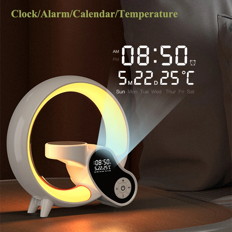 Modern White Bluetooth Alarm Clock with RGB Lights