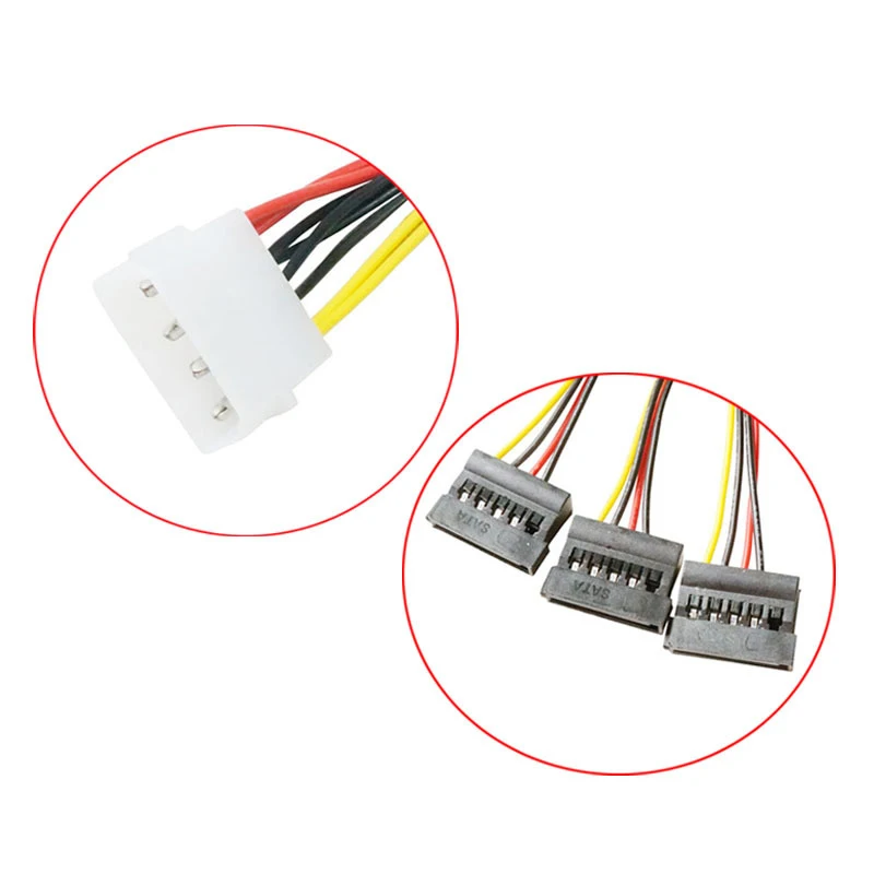 Enhance your PC’s power management with this 20cm IDE Molex 4-pin male to SATA female splitter cable, featuring a sleek design with a white connector and three black SATA ports. Constructed with 17 * 0.12TS tin-plated copper conductors and an outer diameter of 1.6mm, it reliably converts one 4-pin male power connector into three SATA power outputs, perfect for extending and distributing power to multiple hard drives. The neatly organized, flexible outer jacket ensures durability and ease of use, making it an essential accessory for efficient and streamlined cable management in your computer system.