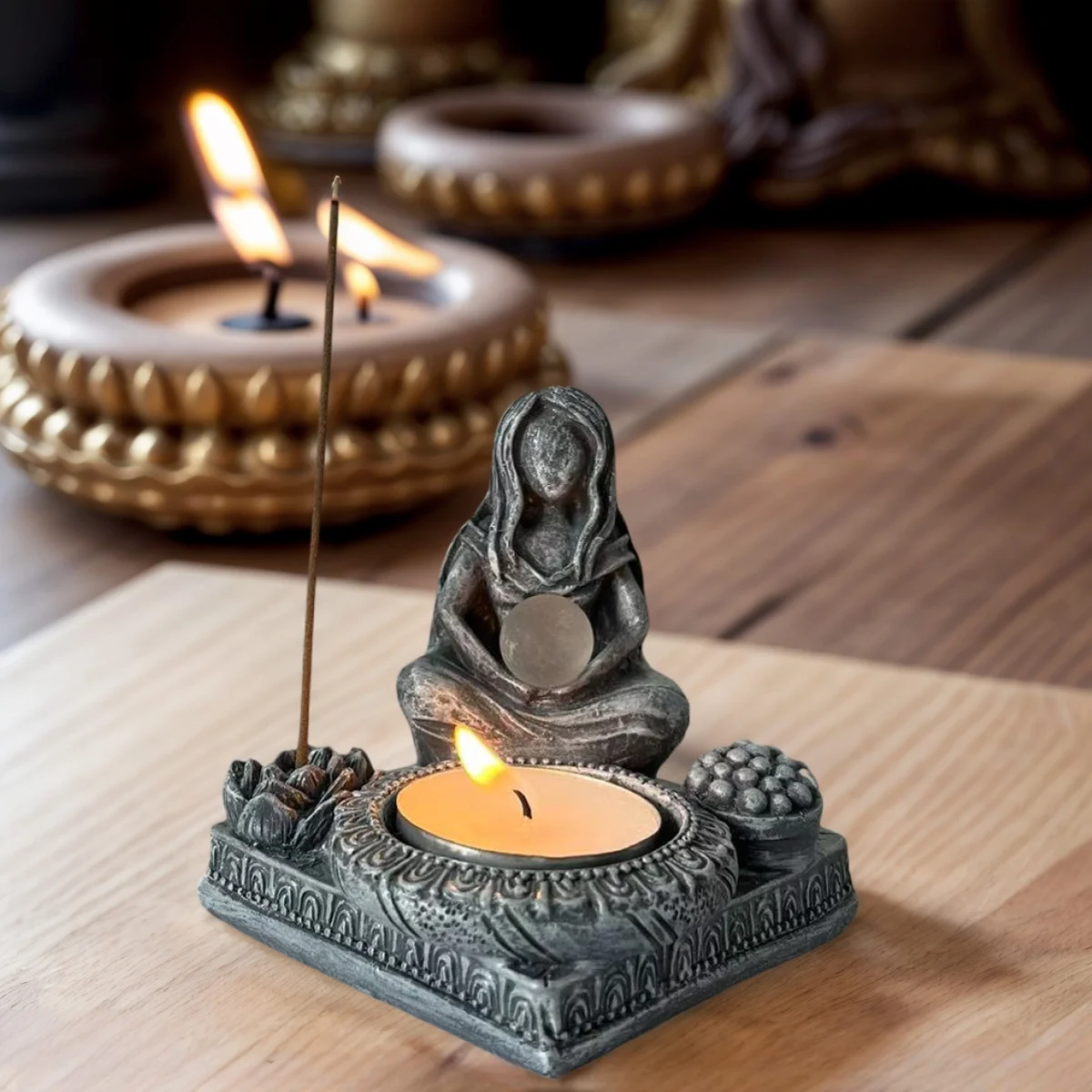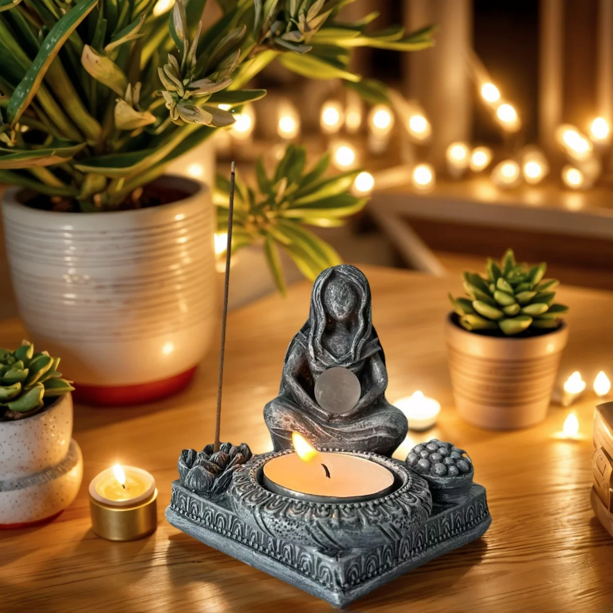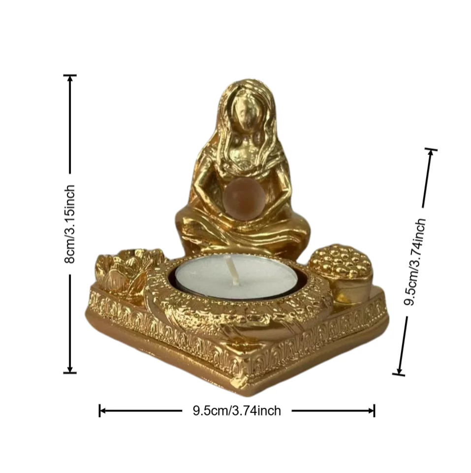 Enhance your space with this handcrafted resin moon goddess candleholder available in elegant ZL-32A Gold and ZL-33B Blue variants. Featuring intricate detailing, antique hues, and a serene seated pose, it exudes timeless charm and spiritual tranquility. Perfect for interior decor, meditation, or creating a calming ambiance, this non-electric piece combines soft candlelight and fragrance to promote relaxation. Suitable for various styles including European, bohemian, and wabi-sabi, it embodies themes of healing, slow living, and mindfulness. Add a touch of divine elegance to your home, transforming any corner into a peaceful sanctuary.